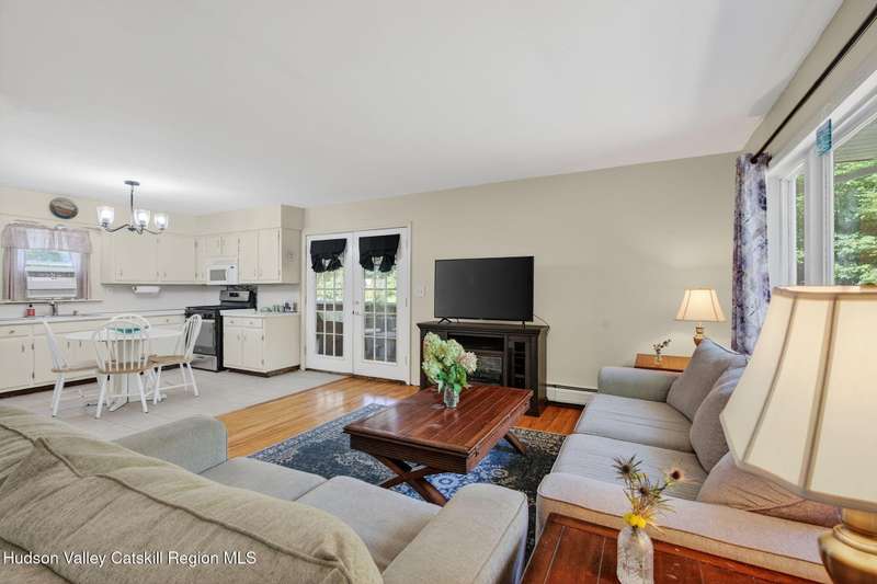 Tucked away on 2.8 peaceful acres just outside of Palenville in the Town of Saugerties, this charming 3-bedroom, 1-bath ranch offers a private setting with plenty of space to enjoy the outdoors. Set back behind another home, you'll find yourself surrounded by nature while still being only minutes from nearby towns and amenities. The property boasts a wide-open side yard, perfect for creating your own gardens, adding a pool, or simply enjoying the expansive green space. A highlight of the home is the large enclosed screened porch, which looks out over the yard and offers the perfect spot for three-season entertaining, relaxing with a good book, or dining al fresco with friends and family. Two additional back decks extend the outdoor living options, one accented by a showstopping hydrangea bush that blooms beautifully each year. Inside, hardwood floors flow throughout the home, enhancing the warm and inviting feel of the single-level layout. Natural light fills the rooms, creating a comfortable flow that makes everyday living easy. Practical features include a one-car garage and a spacious full basement, offering plenty of storage and utility space. Ideally located, this home is just a short drive to the villages of Catskill, Saugerties, and Woodstock, as well as Hunter Mountain and other ski resorts. Hiking trails, golf courses, the Hudson River, local farm markets, art galleries, and a vibrant dining scene are all within easy reach, giving you the best of both the Catskills and the Hudson Valley. Whether you're looking for a full-time residence or a weekend retreat, this property offers privacy, convenience, and the opportunity to create your own oasis in one of the region's most sought-after areas.