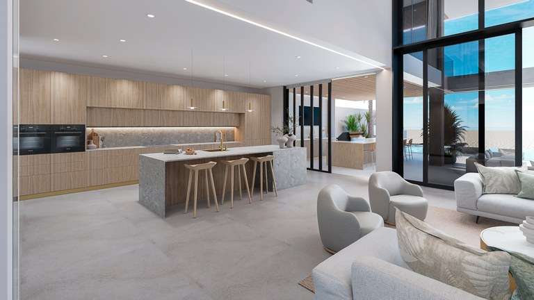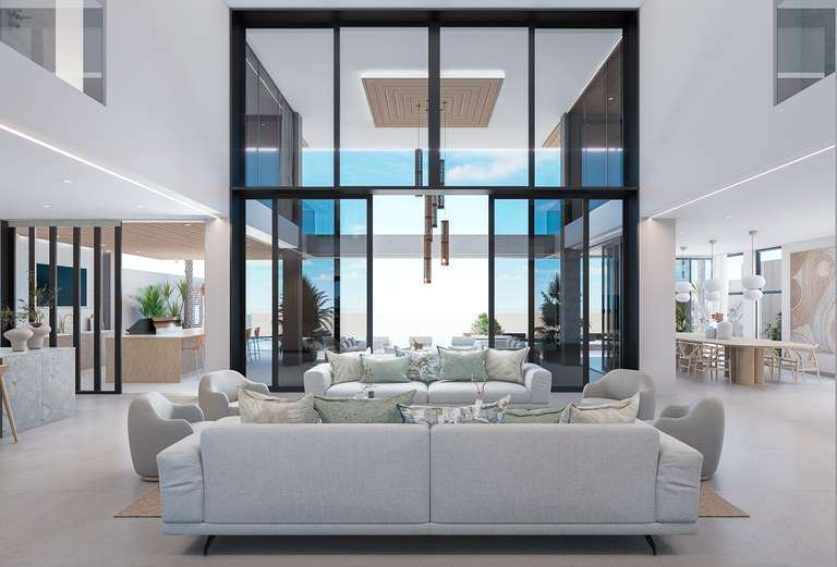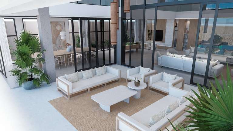 Casa Linda includes 8 spacious bedrooms—including an attached private casita—and 10 elegantly appointed bathrooms. Two luxurious master suites feature sweeping ocean views, spa-style bathrooms, and direct access to the outdoor living areas. The villa's expansive 1,000-square-foot outdoor great room is ideal for entertaining or relaxing in the sea breeze, blending seamlessly with the 8,000 square feet of indoor space.