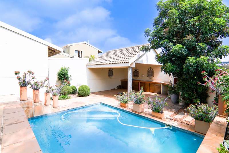The way leads to a large well proportioned tiled open plan Lounge and Dining area which boasts a Gas fireplace, underfloor heating system, built-in wine cellar, sound system and storage for your music collection. Fitted for your comfort is a large air conditioning unit and fitted blinds. With Security gates and doors that lead to the gorgeous and lush entertainment area and sparkling pool, enhancing the feeling of bringing the outdoors in.