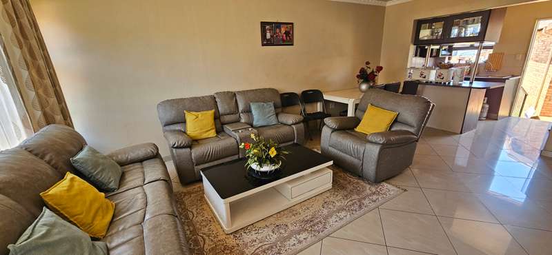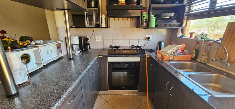 This simplex unit comprises of an open plan kitchen, lounge and dining area. There are 3 carpeted bedrooms with built in cupboards and 2 bathrooms. The garden is very spacious with 2 carports. A very well secured unit with complex security, security gates and electric fencing around the complex. Situated close to amenities and easy access to all main roads and highways...