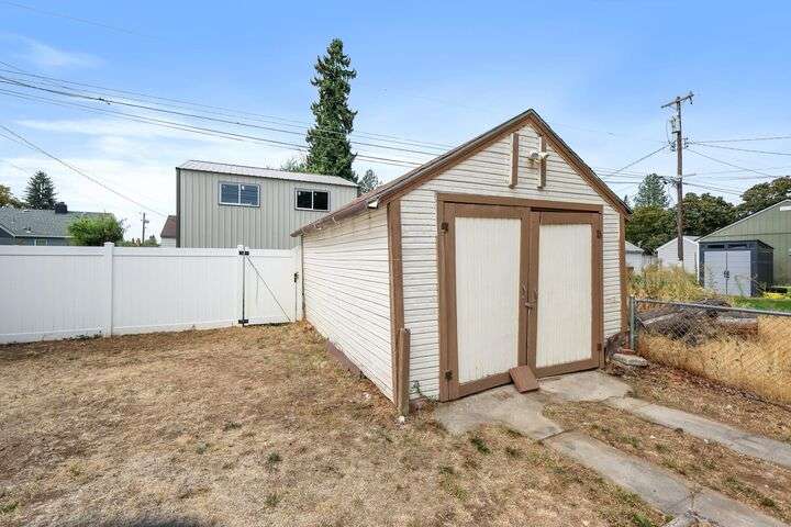 Welcome to this adorable Shadle bungalow that blends timeless charm with modern convenience! Featuring original hardwood floors, a cozy wood-burning fireplace, and character around every corner, this 3 bed, 1.5 bath rancher is full of warmth. Enjoy mornings in the bright kitchen with breakfast nook, and stay comfortable year-round with gas forced air heating. Downstairs, you’ll find a flexible space perfect for an office or potential 4th bedroom. The fenced backyard, detached garage, and vinyl siding add practicality, while the central location puts you close to parks, schools, shopping, and restaurants. Come see this Spokane gem today!