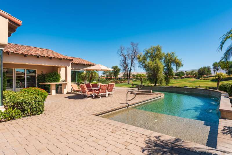 AUGUST-DECEMBER RATE $9,000 PER MONTH; JANUARY-APRIL RATE $11,000 PER MONTH. Welcome to your own private desert oasis, where luxurious living meets awe-inspiring natural beauty. Tucked within the highly coveted Mission Hills Legacy neighborhood, this exceptional residence offers a peaceful and elegant retreat in one of the desert's most prestigious communities.From the moment you enter through the guard-gated entrance, you're enveloped in serenity. This expansive home features three spacious en suites and three and a half baths, thoughtfully designed for comfort and entertaining. The gourmet chef's kitchen flows effortlessly into the large family room and wet bar, creating a perfect gathering space for guests and loved ones.Walls of glass showcase breathtaking views of the golf course, tranquil water features, and the dramatic desert landscapeincluding panoramic vistas of Big Bear, Mount San Jacinto, and the Chocolate Mountains. Whether you're in the living room, family room, or dining room, the beauty of the outdoors is always within view.Step outside to your own resort-style backyard, where the sun-drenched patio features a sparkling pool and spa, built-in BBQ, and a cozy fire pitperfect for evening gatherings under the stars. This expansive outdoor space invites you to relax, entertain, and take in the unforgettable sunrises and sweeping mountain views that define the desert lifestyle.Come home to Mission Hills Legacy, where elegance, privacy, and stunning natural surroundings create a living experience like no other. Book now to reserve your stay!