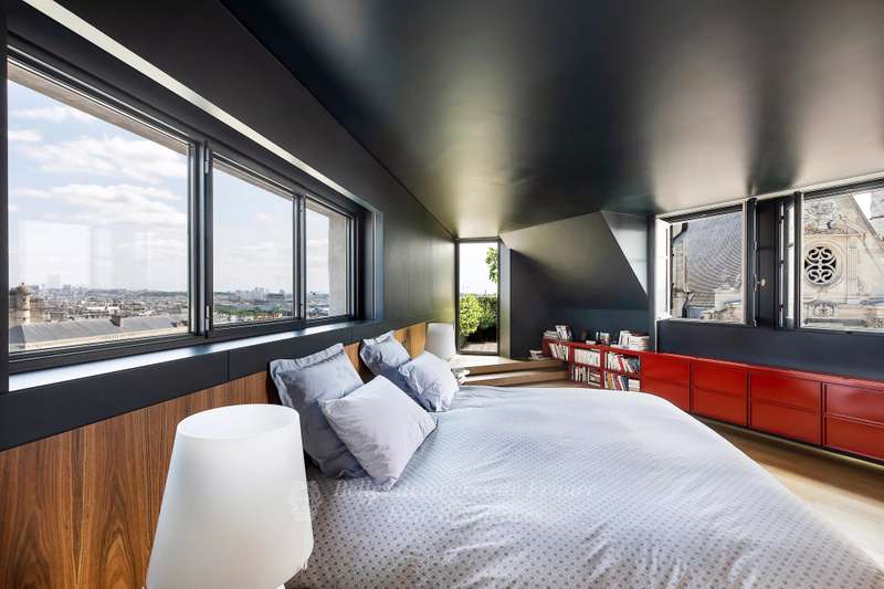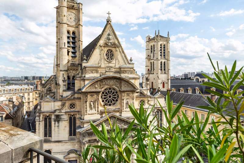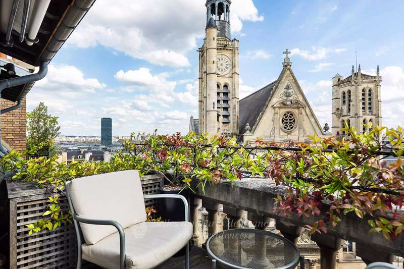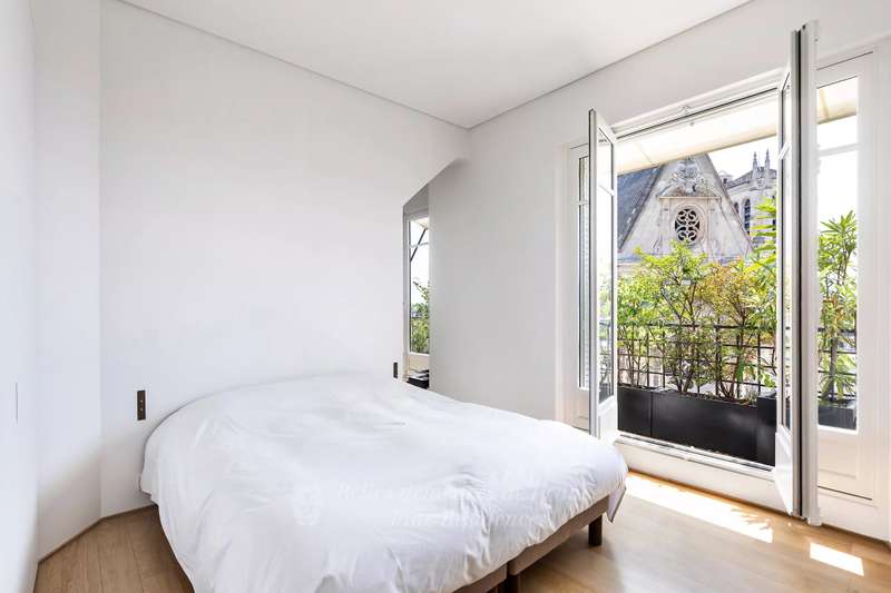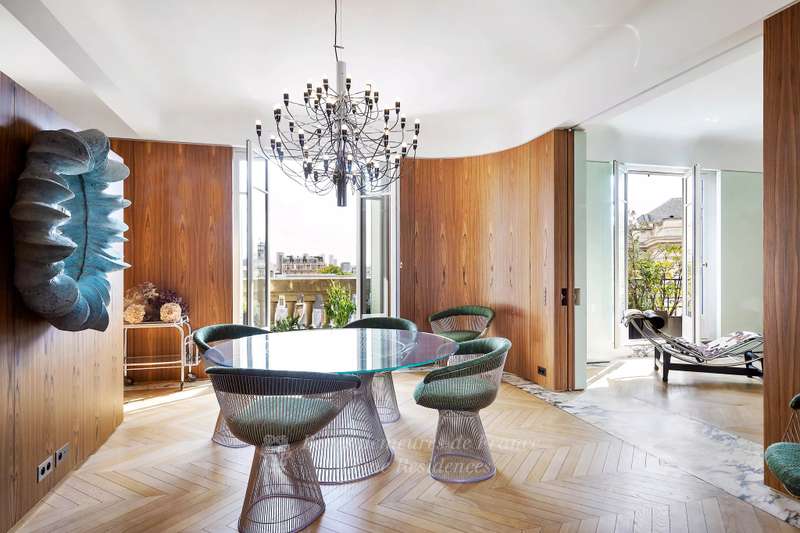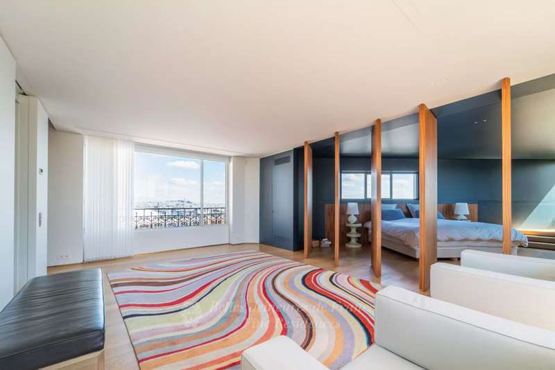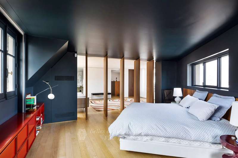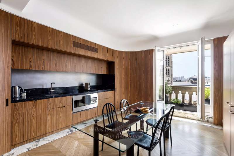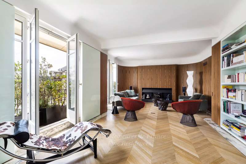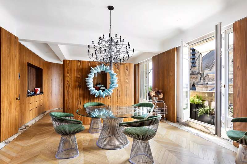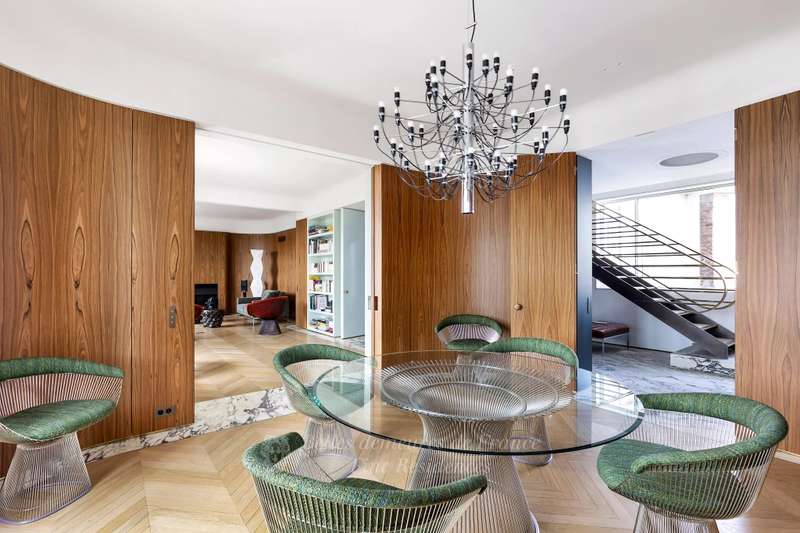 This magnificent 230 sqm apartment on the top floors of a luxurious late 1920s building includes a particularly sunny living/reception room opening onto balconies and commanding stunning views of Place du Pantheon and the church, a kitchen with dining facilities, two bedrooms with bathrooms, and a study. The upper floor boasts breathtaking views of the capital and its landmarks, and comprises a master bedroom opening onto two terraces, and a study/home cinema. A parking space nearby is available for purchase or rental. Henri IV catchment area.