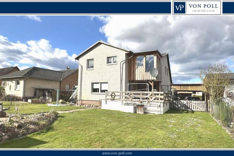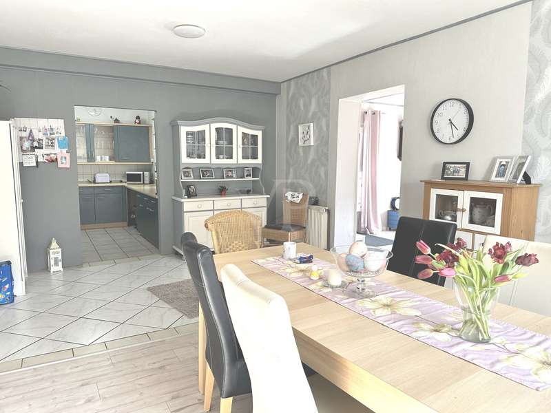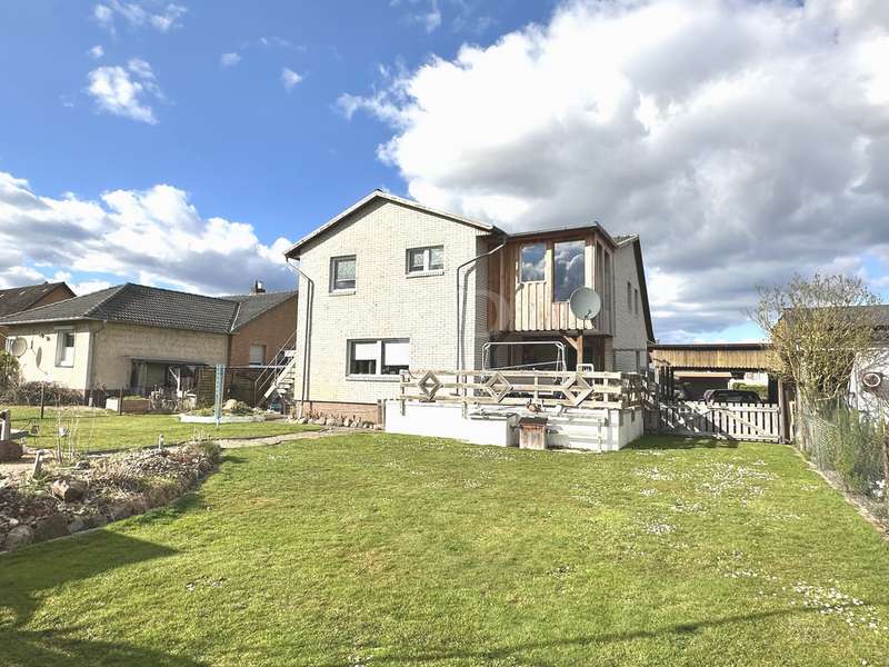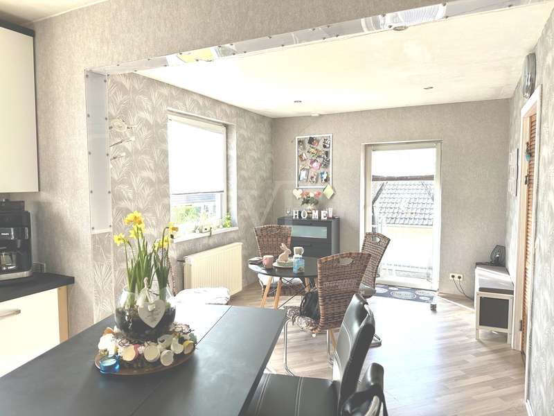 For sale is a spacious two-family house that was built in 1971 and extensively modernized in 1997. The property is situated on a spacious plot of around 820 m² and offers a living space of approx. 206 m² spread over a total of 7 rooms. Having been converted into a two-family home in 1997, the house offers flexible living options, making it particularly suitable for multi-generational households. On the first floor, you enter a tastefully designed living unit with a room layout that is ideal for families or couples. The spacious living room offers plenty of room for sociable evenings or relaxing hours. The kitchen is directly adjacent to the dining area, allowing smooth transitions between cooking and enjoyment. There are also two of the three cozy bedrooms on the first floor, which offer plenty of privacy and retreat options. A modern bathroom with high-quality fittings rounds off the space on this level. A separate external staircase leads to the upper floor, which can be used as a separate living unit. This floor includes an additional living room, a bedroom and a bathroom as well as a small kitchen, which allows independence for the residents on this level. This flexible room layout is ideal for grandparents, grown-up children or even for renting out. The central heating system provides cozy warmth in both units. The clinker brick façade with thermal insulation, which was renewed in 1997 and, in combination with the roof insulation including vapor barrier that was also carried out that year, ensures excellent insulation values. These measures not only contribute to the energy efficiency of the house, but also ensure the long-term preservation of the building fabric. The well-kept property offers a wide range of possible uses. A particularly interesting addition is the outdoor kitchen installed in the garden, which provides a wonderful opportunity for outdoor celebrations and social occasions. Thanks to the automatic irrigation system and the robot mower, garden maintenance is made easy, giving you more time for relaxation. The property is in a well-kept condition and appeals to both families and investors thanks to its flexible use and features. The quiet residential location, combined with a well-developed infrastructure, enables a high quality of life and attractive living. Thanks to its variability, this property offers numerous potential uses that you should not miss out on. A viewing is highly recommended to discover and experience the full potential of this property.