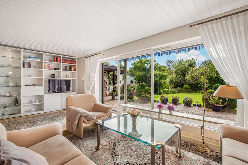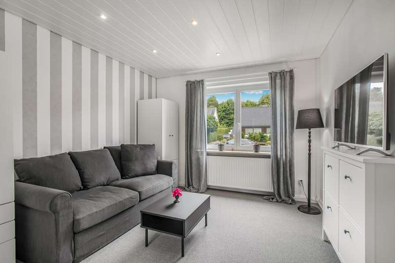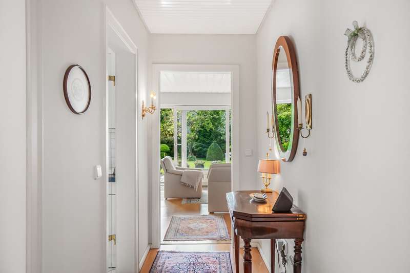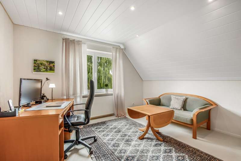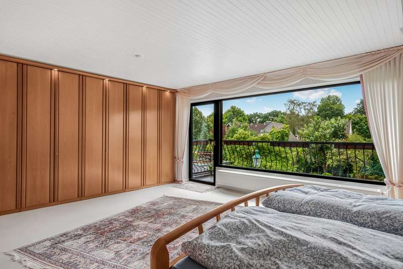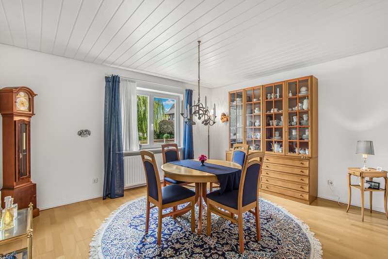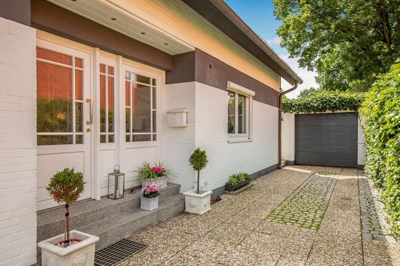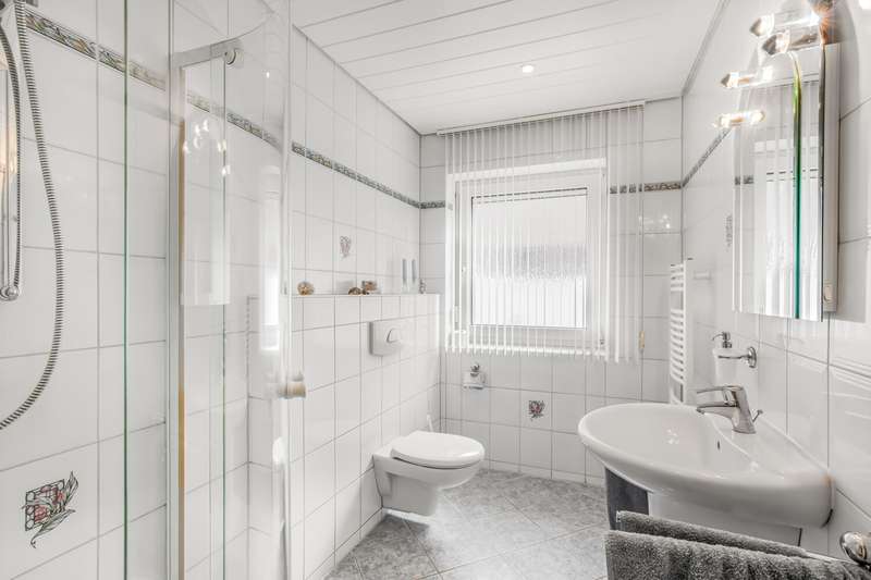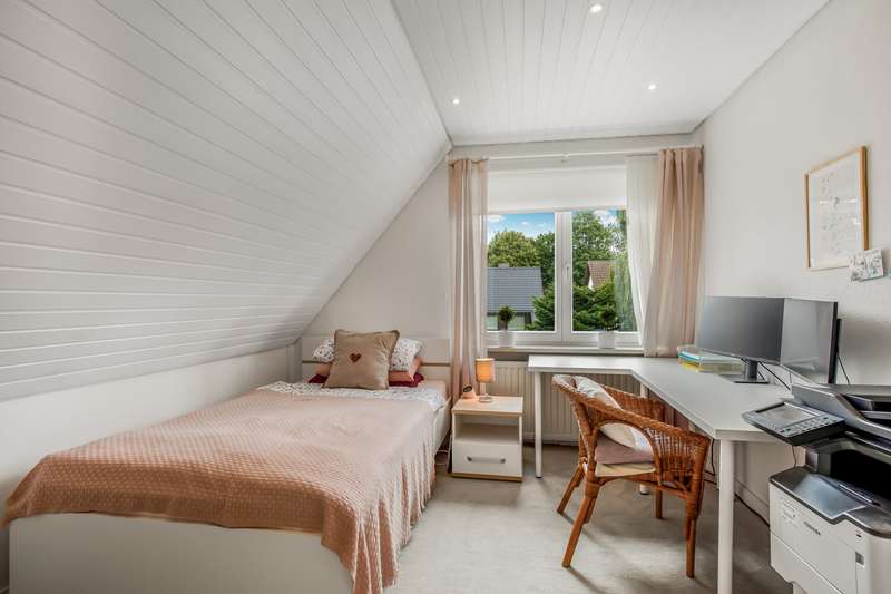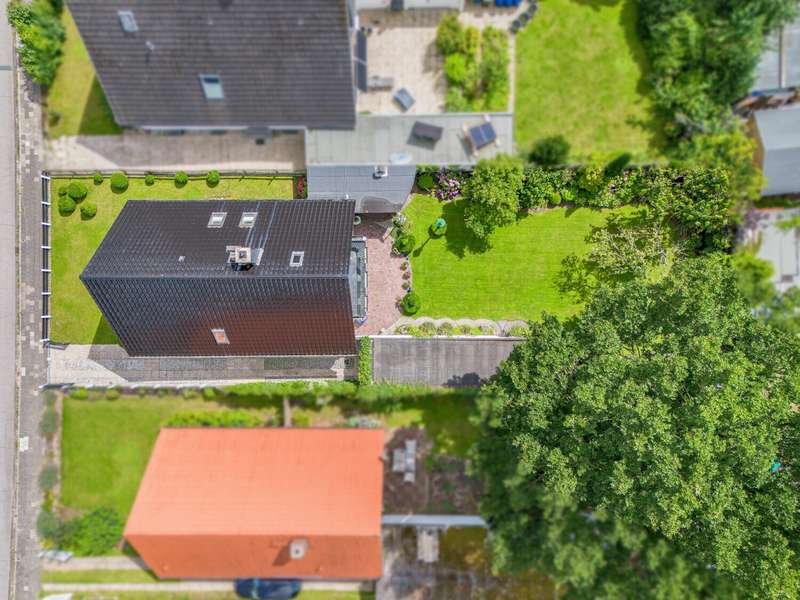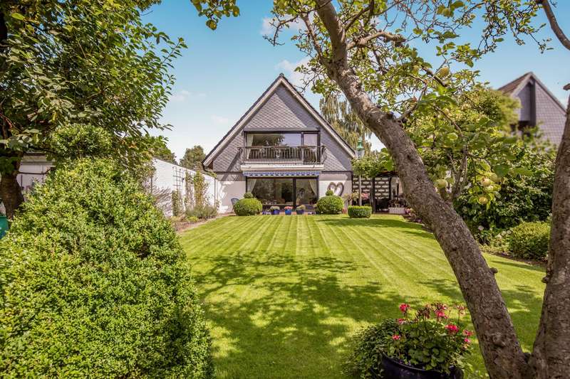 This very well-kept detached house from 1969 combines timeless architecture, a well thought-out room layout and a lovingly landscaped garden to create a harmonious overall picture. The fully fenced, 659 m² plot in the popular Faldera district of Neumünster offers both urban and peaceful living in the countryside - a combination that is rarely found. With a living space of approx. 159.32 m² (first floor approx. 88.23 m², top floor approx. 71.09 m²) and an additional approx. 77.66 m² of usable space, the house offers a wide range of possible uses - whether for couples, families or for living and working under one roof. The well-kept overall condition allows immediate occupancy. Heating is provided by gas heating from 2014 with a 150-liter hot water tank. Additional comfort is provided by underfloor heating in the kitchen and shower room on the first floor and in the spacious full bathroom on the top floor, while all other rooms are equipped with radiators. The entrance area welcomes you with a spacious, light-flooded hallway. Two cozy bedrooms, a modern shower room with underfloor heating and a bright kitchen with a fitted kitchen from 2000 offer a high level of living comfort. The spacious living and dining room with access to the approx. 24 m² west-facing terrace invites you to spend relaxing hours in the sun. The terrace is equipped with a manually operated awning that was renewed in 2023. A second, covered terrace with a new roof from 2024 and an outdoor fireplace ideally complements the outdoor area. Three further bedrooms await you on the top floor, including one with access to the approx. 4.7 m² west-facing balcony. The spacious full bathroom with corner bath, shower and underfloor heating offers plenty of space for the whole family. The insulated attic is divided into two rooms and is ideal for storage. The approx. 50.06 m² partial basement comprises a hallway, a storage room, a party room, a utility room with shower, a workshop and the boiler room. There is also a built-in safe. Three outdoor parking spaces and a solid garage with approx. 27.60 m², electric door, workshop area and practical screw pit offer plenty of space for vehicles and hobbies. A groundwater pump for watering the garden is also located in the garage. The house is technically well equipped: The roof was completely renewed in 2010, fitted with 16 cm of insulation and covered with glazed clay tiles. The windows are predominantly double-glazed wooden windows from 1997, 1998, 2003 and 2005, supplemented by two plastic roof windows. Five windows have roller shutters, three of which are electric. Fiber optic and cable TV connections are available. The electrics date back to the original year of construction and are 2-core - an aspect that offers modernizers additional scope for design. With room heights of approx. 2.40 m on the ground floor and top floor, a basement ceiling height of approx. 2.07 m, high-quality staircases made of Jura marble and a varied floor design of tiles, carpet, laminate and linoleum, the house has a solid basis for individual living. The detached house is available immediately - ideal for owner-occupiers who want to fulfill their dream of living in Faldera, or for investors looking for an attractive property in a prime location to rent out. See the many advantages of this property for yourself and arrange your personal viewing appointment today - or discover the house in advance on a virtual tour using the QR code on the fourth page of the brochure.
