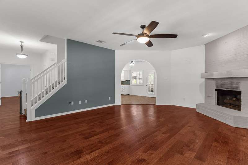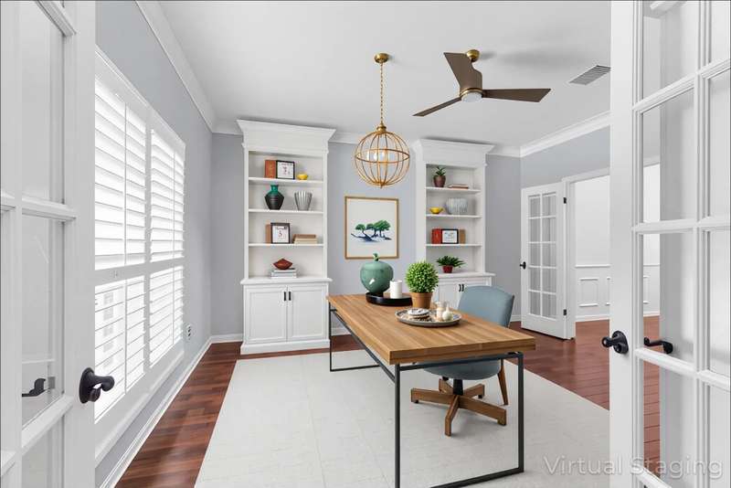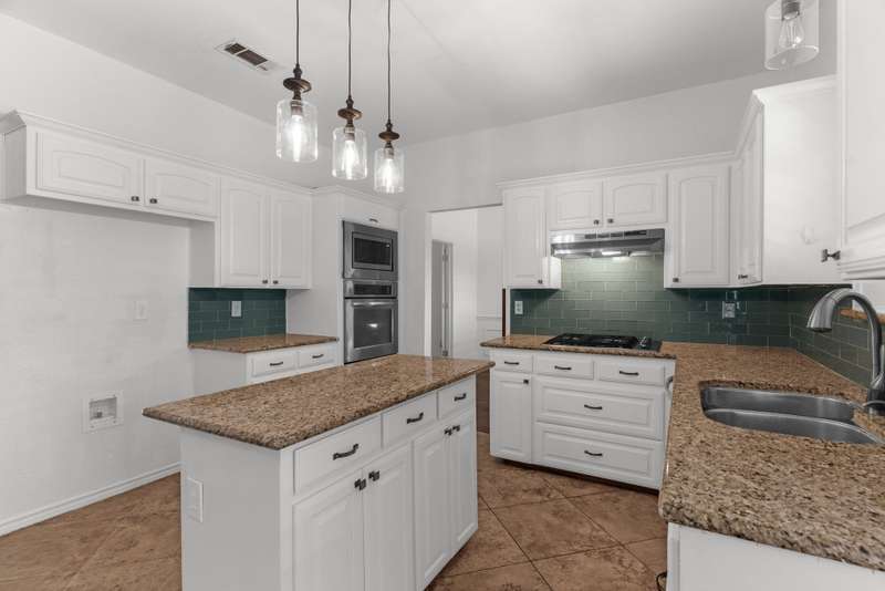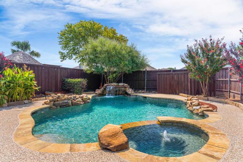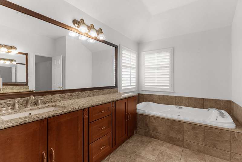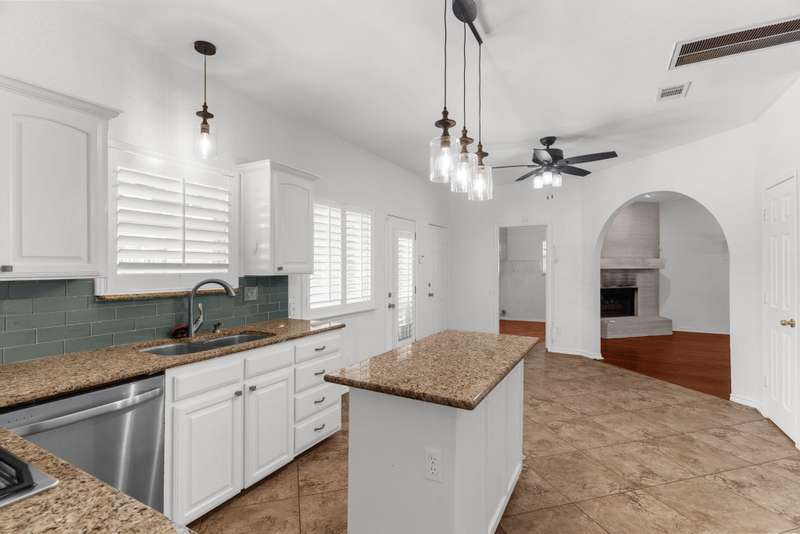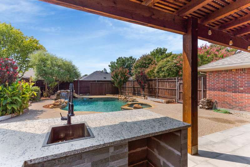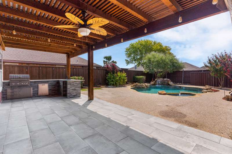 Beautifully appointed 4-bedroom, 2.5-bath home with a private study, offering both comfort and style. The island kitchen is a chefs delight, featuring granite countertops, stainless steel double ovens, and a gas cooktop. The spacious living room is warm and inviting with a gas log fireplace, while plantation shutters throughout add a touch of timeless elegance.The primary suite is a true retreat with a jetted tub, separate shower, dual sinks, and a generous walk-in closet. Step outside to your private backyard a waterfall pool, relaxing spa, and outdoor kitchen provide the perfect setting for entertaining or everyday enjoyment.