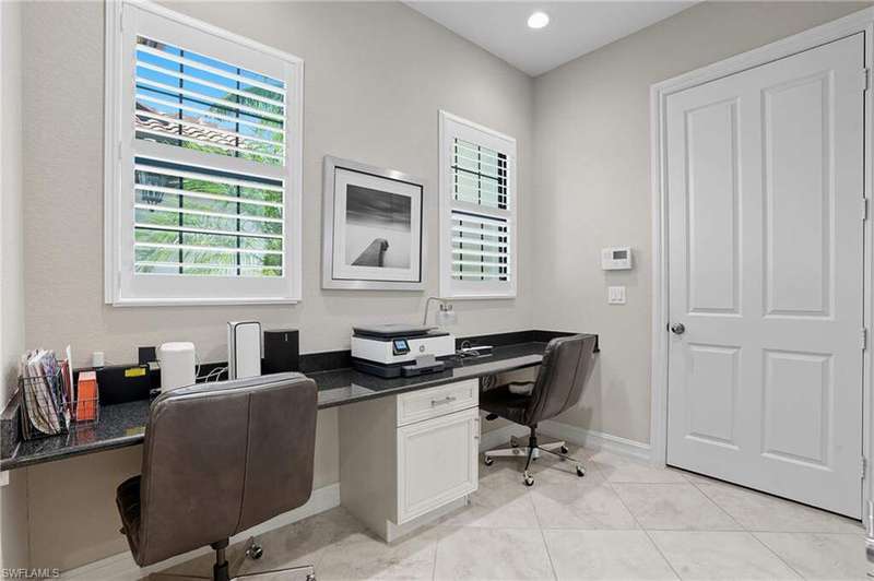 Step into this stunning residence with tranquil lake views in the exclusive Lakoya enclave of Lely Resort, where timeless elegance meets modern convenience. Designed with both sophistication and comfort in mind, this home offers a seamless blend of indoor and outdoor living, creating the perfect retreat for entertaining or simply enjoying the Naples lifestyle. From the sparkling pool and spa to the expansive lanai with a panoramic screen, outdoor kitchen, and natural gas cooking, every detail has been thoughtfully designed to showcase the beauty of Florida living at its finest. Inside, you'll find 4 bedrooms, a 2 desk office space off the garage, 3.5 baths, and a 3-car garage with a mini split AC unit. Recent upgrades provide both peace of mind and efficiency, including two new AC units, a new endless hot water system, new washer and dryer, plantation shutters, custom drapery, and a whole-house generator installed in 2022. The exterior also features professional landscaping, a freshly painted facade, professional landscape lighting, a new travertine pool deck, and a reimagined pool and spa. All impact windows and doors are complemented by Storm Smart shade protection, allowing you to conveniently keep your outdoor furniture on the under-roof lanai year-round. A new front door enhances the home's inviting curb appeal. Additional features include a new alarm system with a 10-year battery life and an insulated attic and crawl space for added AC efficiency. As a resident of Lakoya, you'll enjoy private membership to the renowned Players Club & Spa, featuring three resort-style pools, tennis, pickleball, bocce, grill room and veranda dining, the fabulous tiki bar with 13 TVs for sports viewing, poolside food and beverage service, a full-service spa, and a state-of-the-art attended fitness center. The tennis and pickleball area also hosts a pro shop and a mini grab-and-go cafe. Ideally located to downtown Naples, Marco Island's pristine beaches, shopping, and fine dining, this residence offers the luxurious Florida lifestyle you deserve.