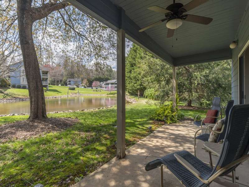 Beautiful Tri Vista Condo at Lake Junaluska. Enjoy all that Lake life has to offer with the ease of turnkey living. This lovely end unit, has no steps to enter, it is move in ready, and comes mostly furnished. Many of residents live year-round, but it would make a great short-term rental or second home. Enjoy your mornings from the covered back patio overlooking the pond, while hearing the creek from the side of the property. This well maintained 2 bedroom/ 2 bath home was freshly painted, carpet throughout with some tile. Location feels private as it is the end unit of the last building and has 2 assigned parking spaces. A short walk to the walking trail, and Stuart Auditorium. Home comes with a storage unit in another building where you can store your pickleball gear, kayaks and more. Live like you are on vacation enjoying the many activities the lake and surrounding areas have to offer. Just minutes to Historic Downtown Waynesville, 30 minutes to Asheville.