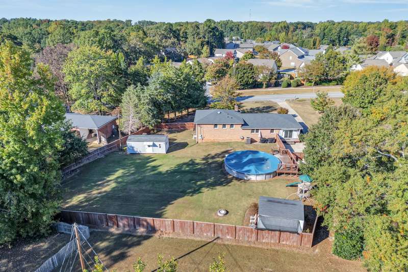 Set on .67 acres, flat and fenced (2020), this 5 bedroom, 2 bathroom tri/split-level delivers 2,255 sq ft of flexible living, a finished lower level with exterior access?ideal for letting pets in and out, entertaining, or stepping right out to work in the yard?and an unfinished basement area perfect for storage (skip the storage unit!). Just off the kitchen, an informal sitting/breakfast area suits morning coffee and quick dinners. The floor plan flows naturally into the great room, so you won't miss a moment of family shows or movies while making snacks and you'll stay connected to the big game or quiet conversations while entertaining as appetizers and meals come together. A large dining room easily handles big family gatherings and holidays. The kitchen is anchored by an exceptional, seller-designed pantry for clarity and convenience?always know what you have vs. what you need; the freezer in the pantry remains (as-is), and the stove and refrigerator are -3 months old. Main-level laundry adds everyday ease. Upstairs offers a spacious primary bedroom plus two additional bedrooms; the remaining bedrooms are on the lower level, providing separation and options for multi-generational living, guests, hobbies, and work. The lower level shines for movie nights and game days with a wood-burning fireplace to take the chill off cool evenings - wanting s'mores but it's raining? Here you go - create some memories with indoor camping! Outside, enjoy a 30' round above-ground pool with surrounding deck (deck has electric; all pool equipment/chemicals convey), a lifetime play yard, and two sheds?a 12?24 with electric for projects and charging tools, and a 12?16 for lawn gear and storage. Big-ticket items are done: roof (2017), septic drainage field (2017), HVAC (2021), all regular windows replaced (2021), plus new front windows, two basement windows, and a new patio door -2 months ago. NO HOA! The generous driveway accommodates camper/boat/extra vehicles. Sellers have worked to maintain this beautiful property, landscaped and added beautiful plantings. The yard is treated with both pre-emergent and post-emergent. The water fountain in the front yard conveys with the property and there are also Govee Strip Lights and timer installed that stay with the property. Just minutes to downtown Five Forks for shopping and dining, with a short distance to downtown Simpsonville, GSP International Airport, and downtown Greenville. Thoughtfully updated and well maintained, this home blends great flow, flexible spaces, smart storage, and ready-made outdoor fun for comfortable daily living.