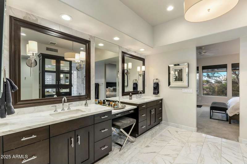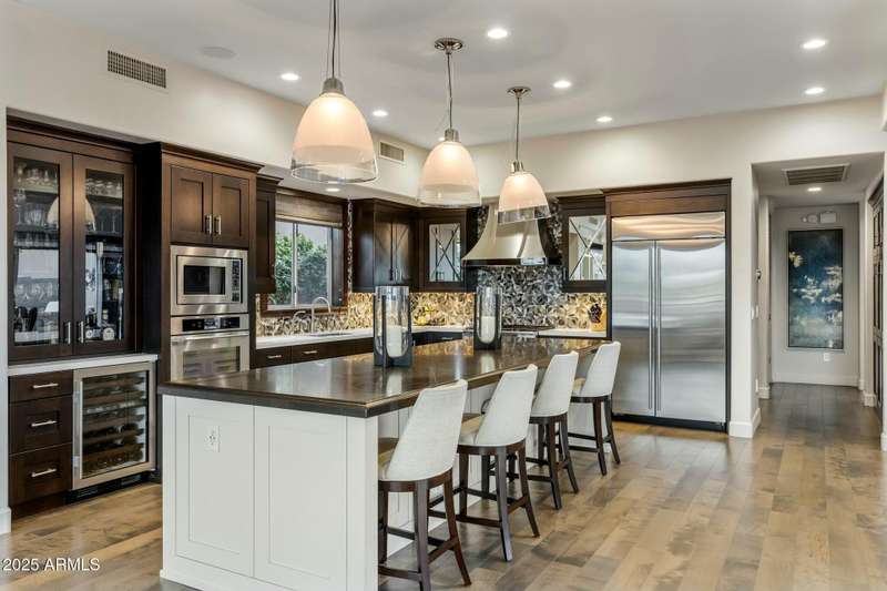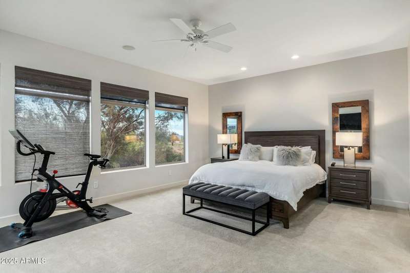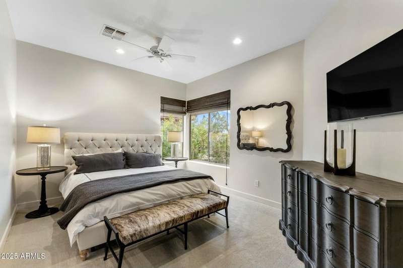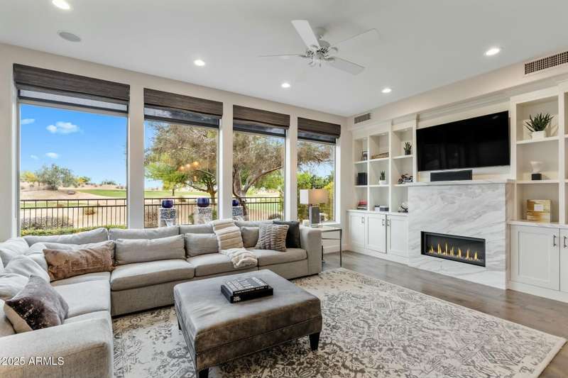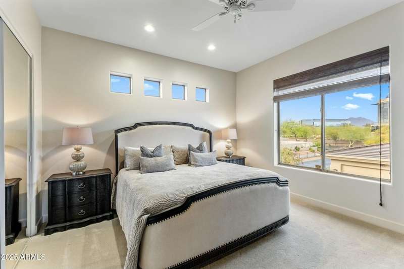 Luxury Living on the 3rd Hole of Acacia Golf Course Exclusive GATED The Reserve at Kierland Welcome to an exclusive enclave of just 17 custom Calvis Wyant homes, perfectly situated within walking distance of Kierland Commons, Scottsdale Quarter, and the Westin Resort. This 4-bedroom, 4-bath, 3-car garage residence spans 3,500+ sq. ft., seamlessly blending elegance with modern upgrades. Step through grand wrought-iron doors into an open-concept floor plan with soaring ceilings, abundant natural light, and breathtaking golf course views. The gourmet kitchen features high-end Sub Zero and Dacor appliances, granite countertops, commercial-grade appliances, a wine chiller, designer lighting, and rich espresso cabinetry—perfect for culinary enthusiasts. The spacious family room boasts a striking fireplace, built-in media center, and stunning wood floors, while Tesla-owned solar panels on a recently updated roof provide energy efficiency and cost savings. Wake up to panoramic mountain and golf course views from the luxurious primary suite, complete with oversized windows and a private balcony -your perfect retreat for morning coffee or evening sunsets. Two additional en-suite bedrooms offer spectacular second-story views, while a main-level office features custom built-ins for added convenience. Designed for ultimate relaxation and entertainment, the backyard showcases a tranquil fountain, fire pit, built-in BBQ, and a separate pool & spaall set against the backdrop of breathtaking golf course sunsets. Whether you're seeking year-round luxury living or a perfect lock-and-leave retreat, this rare opportunity in the Valley of the Sun is not to be missed!