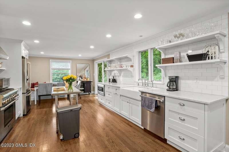 The rental you have been waiting for...this beautifully renovated 3 bedroom, 2.5 bath home is available for rent and convenient to shops, the train and schools in Greenwich. All new hardwood floors on the first floor in this condo and easy entertainment inside and out with the kitchen leading to a large, outdoor deck for BBQ's and cozy, living/familyroom inside. The primary bedroom has a balcony and bathroom and two more bedrooms and a second full bathroom upstairs complete this condo. All bathroom floors are heated. The condo is bordered by conservation land outside with trails to Pemberwick Park.