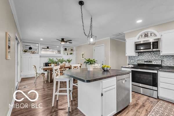 Don't miss this move-in ready 3-bedroom, 2-bath home tucked away in a quiet, tree-lined neighborhood with no HOA. This charming ranch offers a spacious open-concept kitchen featuring an oversized island, glass tile backsplash, and updated appliances-perfect for cooking and entertaining. The inviting great room includes a raised hearth fireplace, creating a warm and cozy atmosphere, along with built-in bookshelves-an ideal spot to relax with a good book. The primary suite features an updated full bath, offering comfort and style. Enjoy the outdoors in the large, fully fenced backyard, complete with a storage shed. This home offers the perfect blend of comfort, privacy, and convenience in a sought-after location.