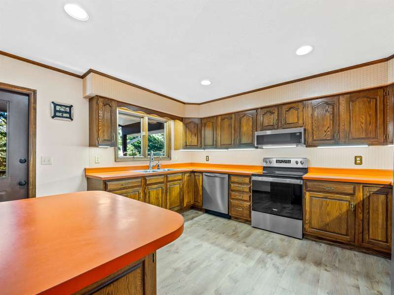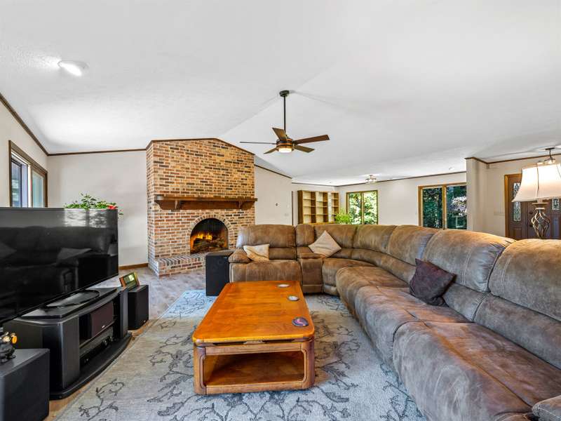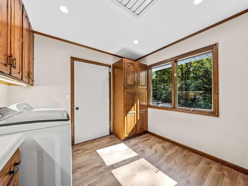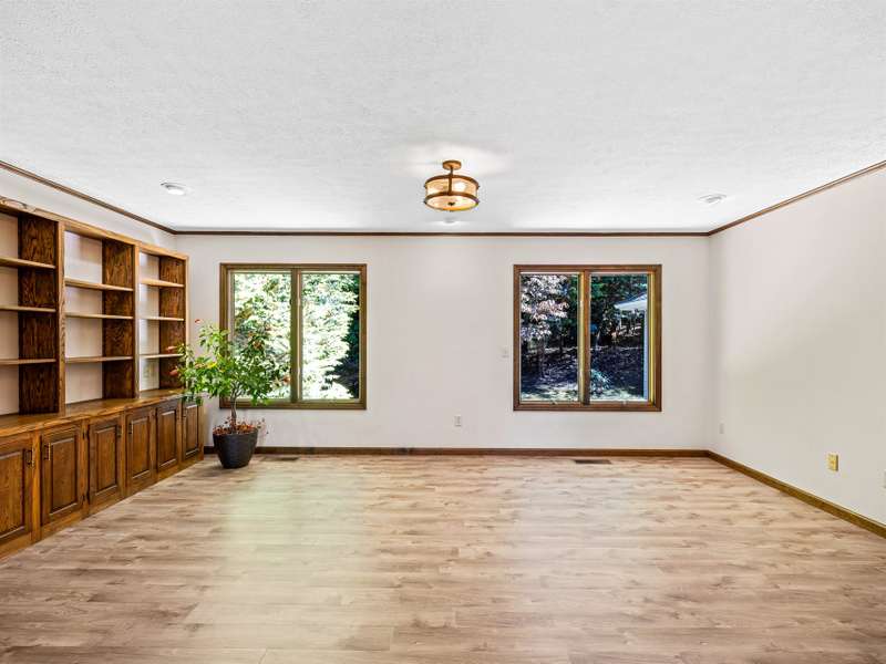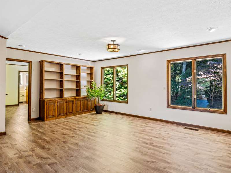 Welcome to 50 Timberlane Circle, a wonderful opportunity for comfortable, one-level living built by the highly regarded Jerry Brown. This solid 3-bedroom, 2.5-bathroom home offers a fantastic foundation ready for your personal touch. You can enjoy scenic mountain views from either the covered porch or the spacious deck, perfect for relaxing outdoors. The home's core is the open Great Room featuring a classic brick fireplace and is now refreshed with new LVP flooring and fresh paint throughout, providing a clean, contemporary canvas. The primary suite offers privacy with an ensuite bath featuring convenient double vanities and closets. The versatile floor plan also includes an additional ensuite bedroom and a third room ideal for a bedroom or home office off the kitchen. Practical features include a dedicated true laundry room and an attached two-car garage. While the home has a mature style, its quality construction and recent updates mean it's perfectly positioned for a new owner to bring their vision to life. Plus, the large basement with an outside entrance offers an excellent space for a workshop or substantial storage. This home is truly ready for its next chapter!