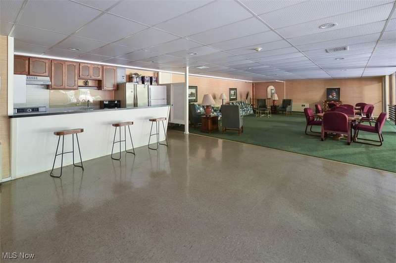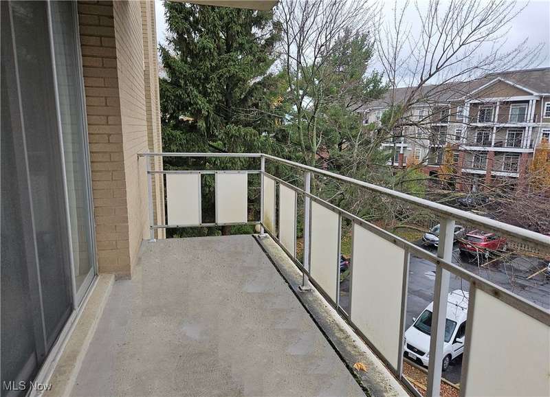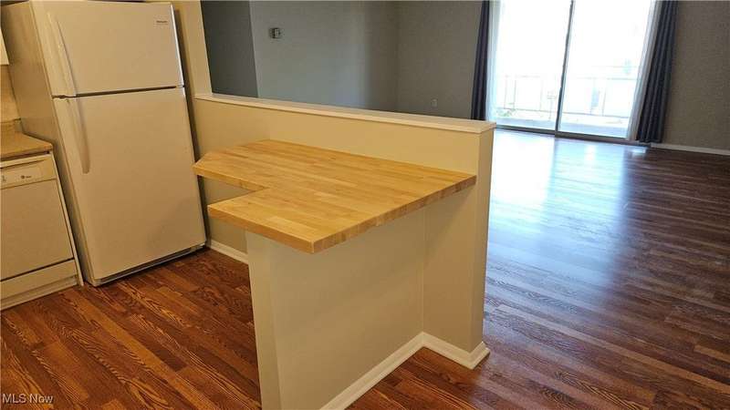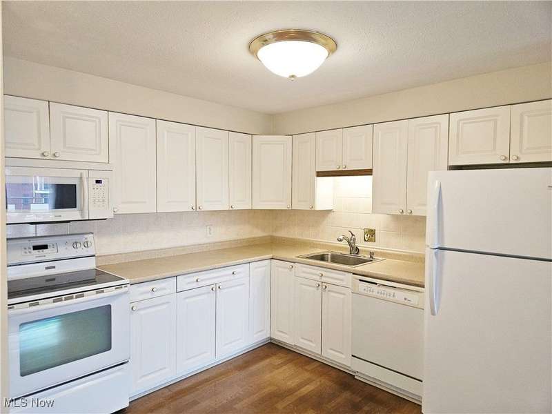 Rare opportunity for a 3 bedroom end unit with 2 full baths! Freshly painted, new half wall between living room and kitchen provides a butcher block-topped island for more seating! The laminate floor in kitchen, living and dining rooms installed 2025. 1264 s.f. is the biggest layout in the building, plus private balcony and storage locker on same floor! There are also so many closets in this unit, including two huge walk-in closets! Wonderfully maintained building with a fitness room make-over, heated indoor pool and whirlpool, beautiful outdoor grounds including a gazebo for gathering w/ friends and charcoal grills for residents use! Also gated access from property to walk to Center Ridge for bus and shopping! Excellent Rocky River amenities!