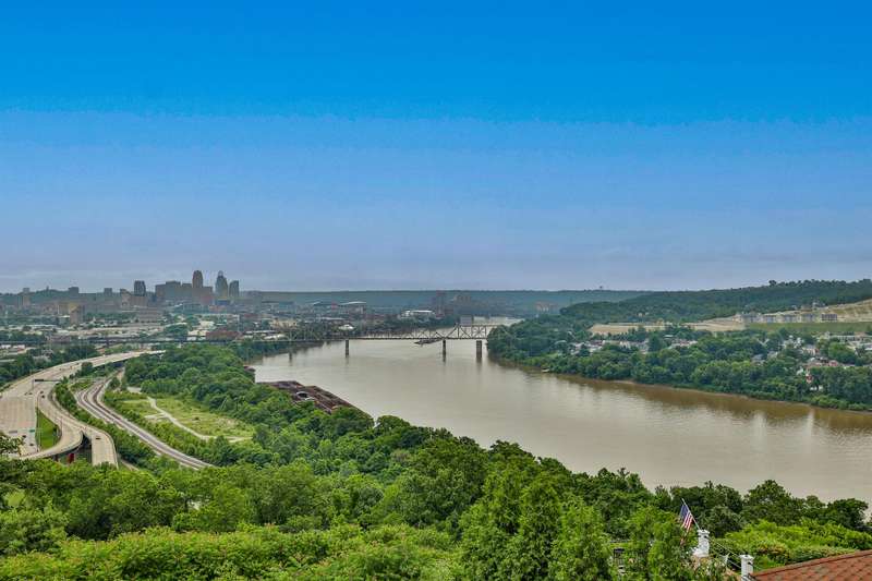 These panoramic river and city views are the best in town! 2567 sqft of quality & custom amenities throughout. Almost completely renovated in 2022! Enjoy the views from the stunning kitchen, which includes high end appliances, copper hood with brick veneer wall, huge island, new hard wood floors & walk-in pantry. The primary suite, which has also been completely renovated, includes a beautiful primary bath, walk-in closet, it's own personal laundry, custom remote blinds, sitting area and private laundry room. This home is located at the end of a private dead-end street. Enjoy your own private elevator, 2 covered porches with brand new custom railings, and new HVAC system. Come and see for yourself these breathtaking views up and down the river, NKY, and straight into downtown! Very low HOA fee, only 4 units in total.