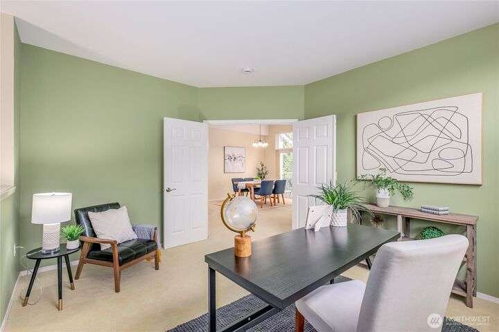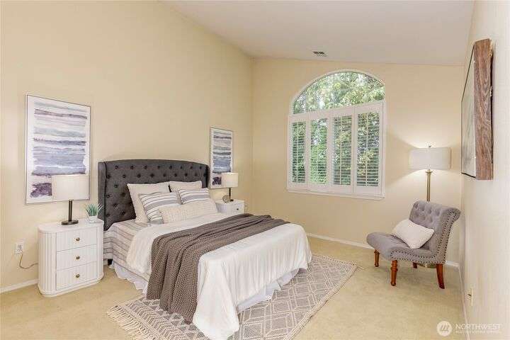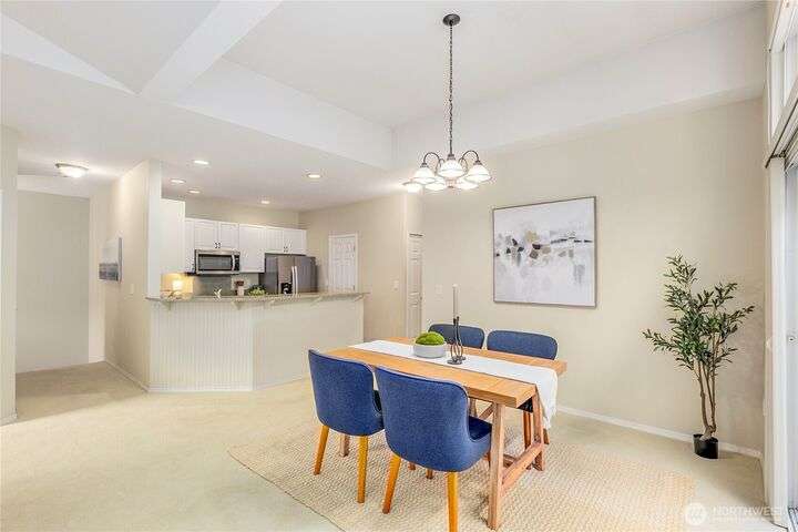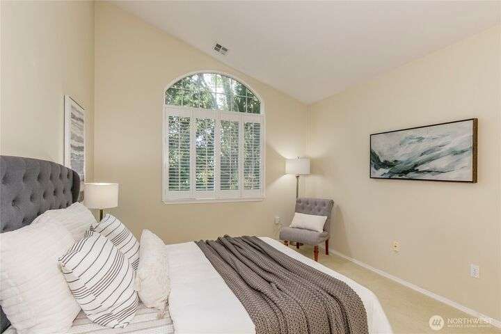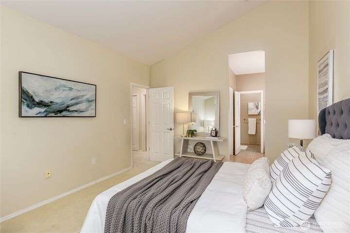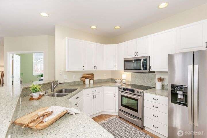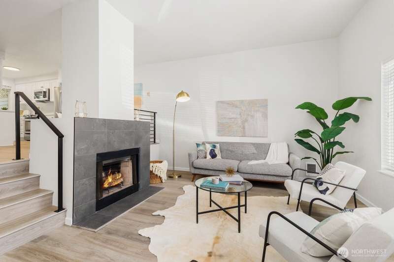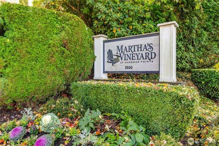 Beautiful Townhome in Mukilteo's sought after Martha's Vineyard. 2 Bdrms + Den, 1.75 Baths & 1448 asf w/ rare attached 2 car garage! Open layout features chef's kitchen w/ granite countertops, stainless appliances, lg pantry, breakfast bar & dining area. Living room is so special w/ vaulted ceilings, gas log fireplace and walls of oversized windows w/ plantation shutters to soak up tons of natural light. French door entry to the light & bright den/office space + sliders open to the private deck. Primary suite boasts vaulted ceilings, walk-in closet, and primary bath w/ double sinks & walk-in shower. Large secondary bedroom, full guest bath & good sized laundry as well! Newer furnace, brand new roof and a perfect Harbour Pointe location!