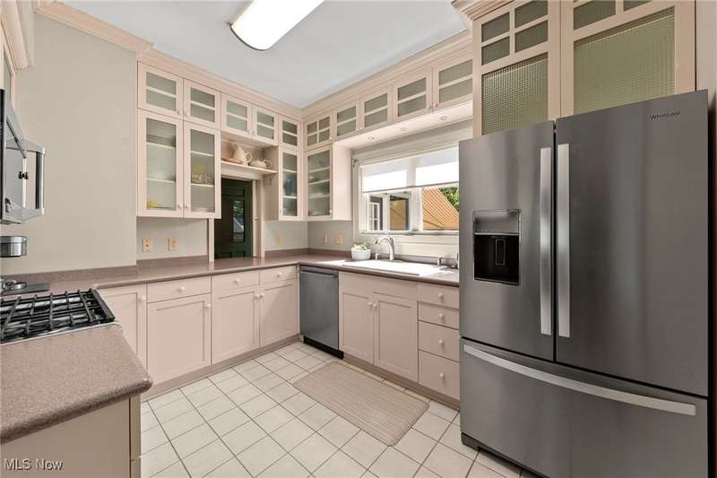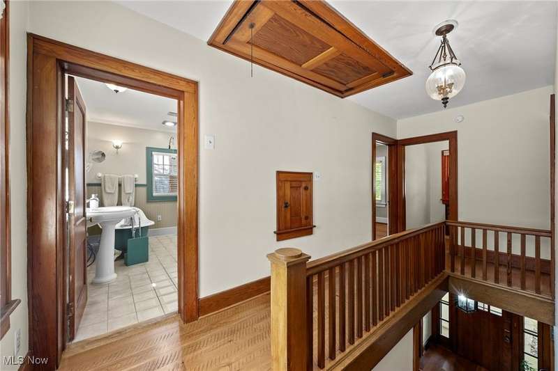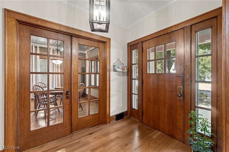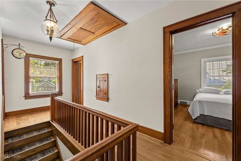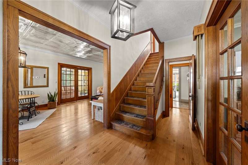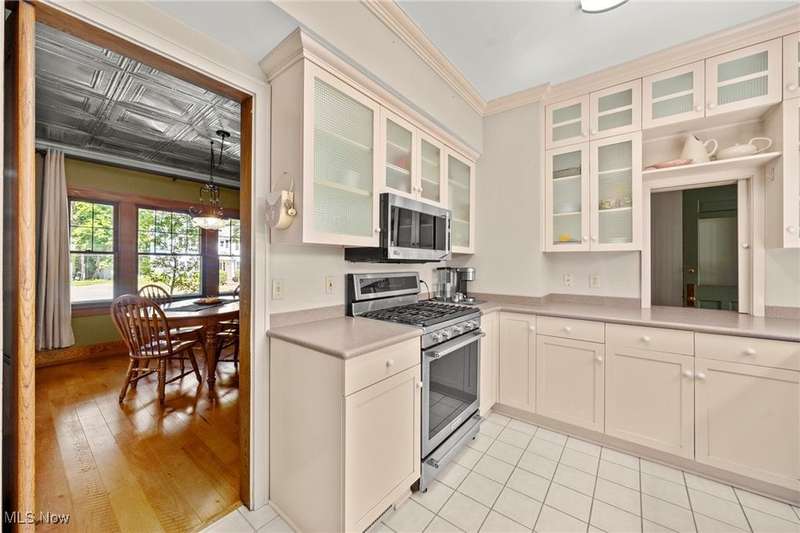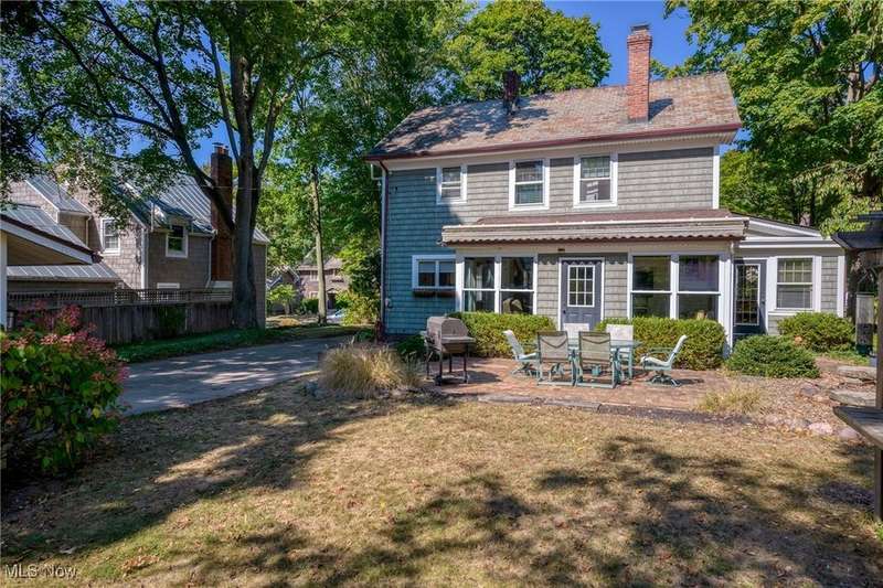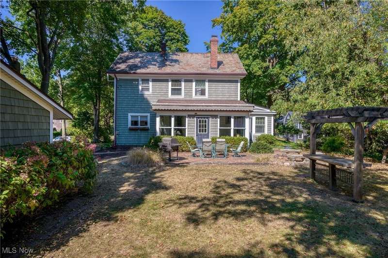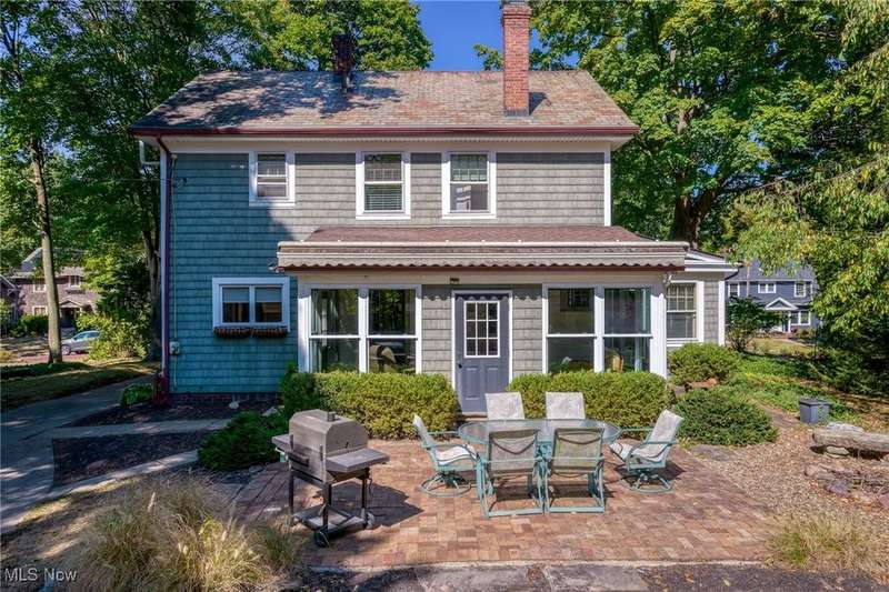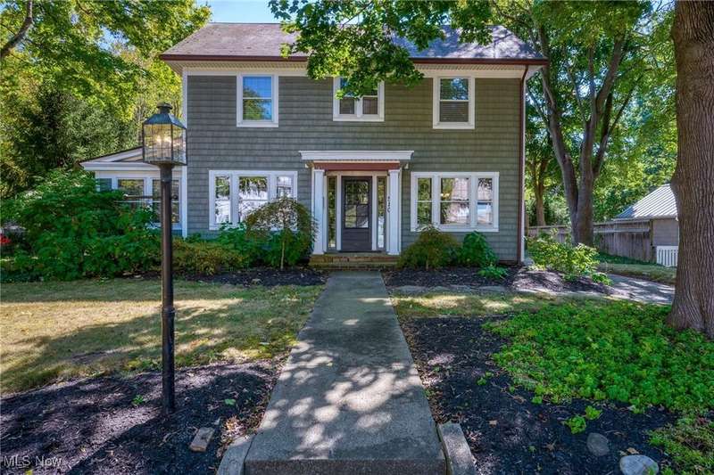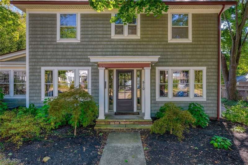 If you have ever driven down Earl Avenue in Kent's historic West Side District, chances are good that you have noticed this house. Perched atop a hill on this charming brick street, 510 Earl is a stunner. With the original slate roof, vinyl shingle siding and a beautifully landscaped yard, this center-hall colonial radiates elegance. As you walk through the front door you are greeted by a stately foyer. You will immediately notice the 9ft ceilings, the gleaming wood floors, the natural woodwork and how well this home has been cared for. A wide doorway opens to the living room with a woodburning fireplace as the focal point. The ceiling is pressed tin, and the fireplace is surrounded by built-in cabinets. The room feels both timeless and unexpectedly modern. French doors connect the living room to the family room. Flooded with light, this room is a lovely spot to relax. On the other side of the foyer is a large dining room with the same gleaming hardwood floors. The well-designed and wonderfully bright kitchen is at the back of the house. The custom cabinets reach all the way to the ceiling to make use of every square inch. Aside from newer appliances and updated counters, there is a fun pass-through to the back hallway. The back porch was converted to a four-season sunroom some years ago. With a modern gas fireplace for heat, you will find yourself gravitating to this room all year round. Up the natural wood staircase to the second floor. Three bedrooms share a tastefully remodeled bathroom. This large bathroom offers a separate shower, stylish claw-foot tub, and plenty of storage space. All three bedrooms are tastefully finished with original doors and big windows. In addition, there is a small nursery between the front two bedrooms. This small room would make a wonderful office or study nook. Outside, a retractable awning brings shade to the brick patio. An oversized two car garage has workshop space. This home is an absolute jewel. Come see for yourself.