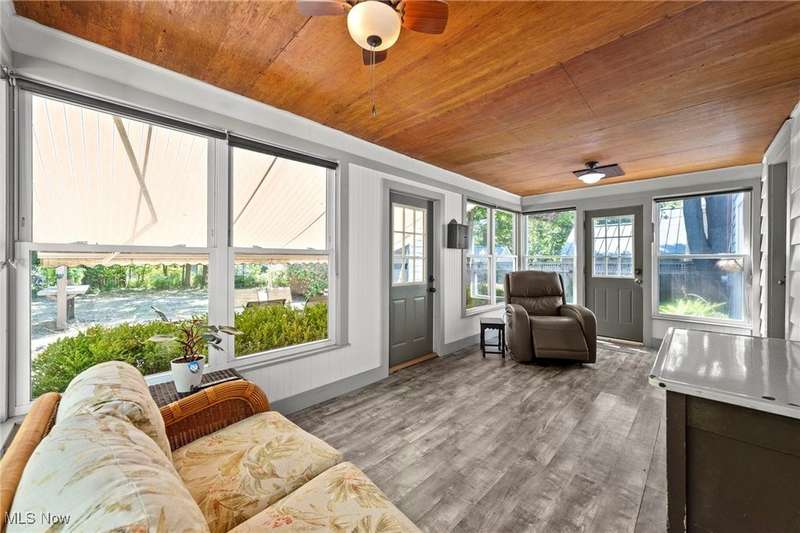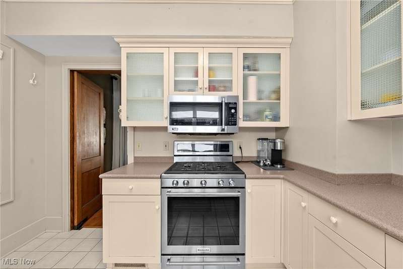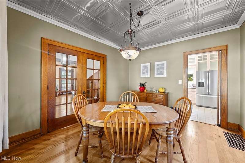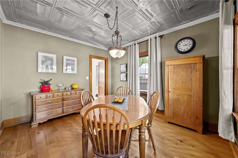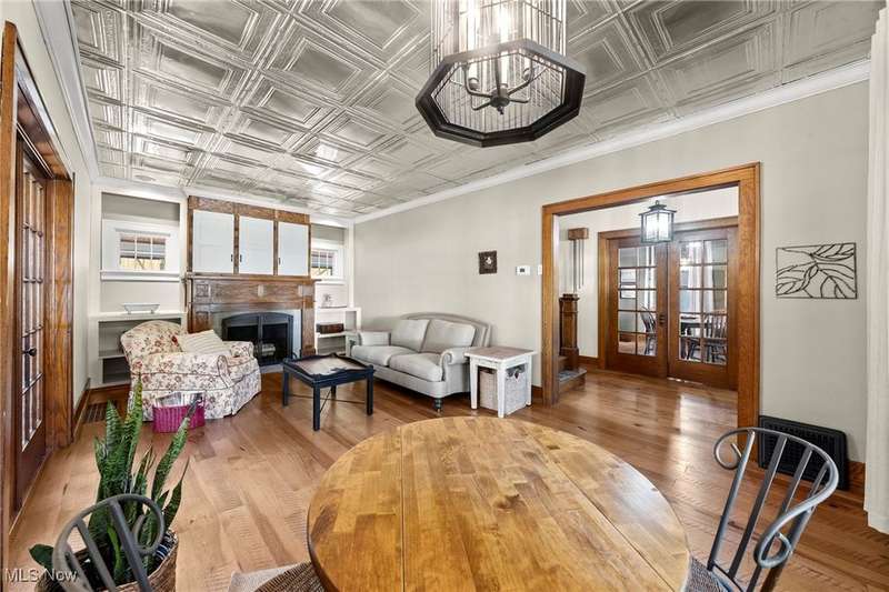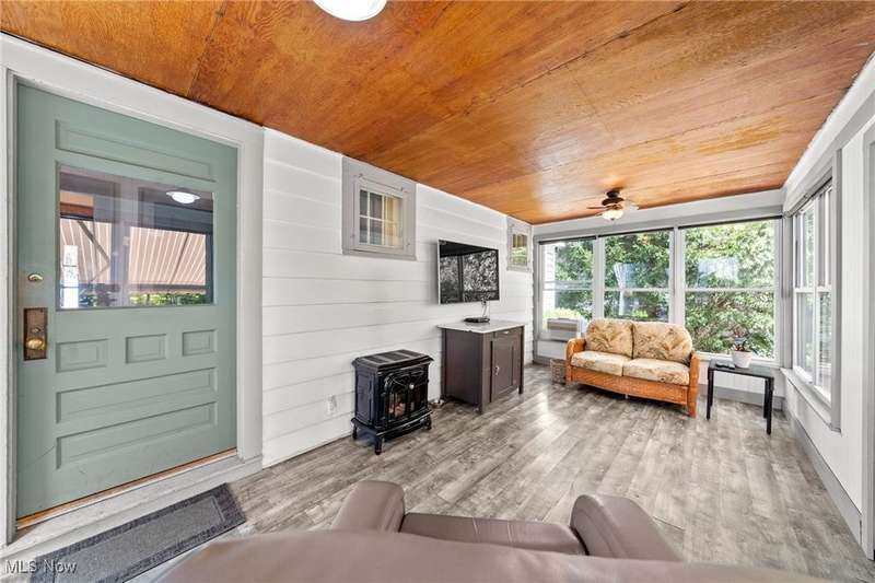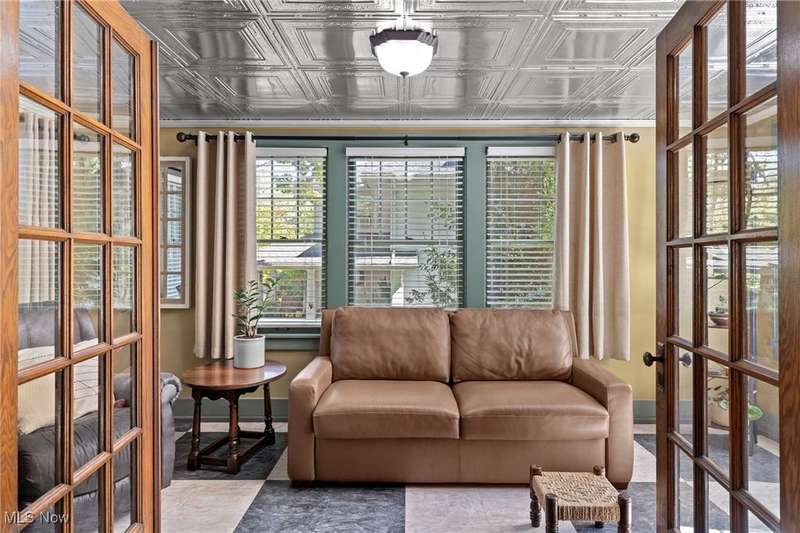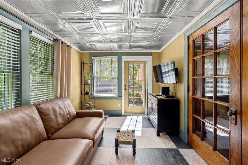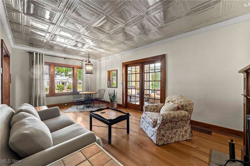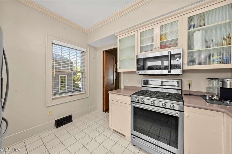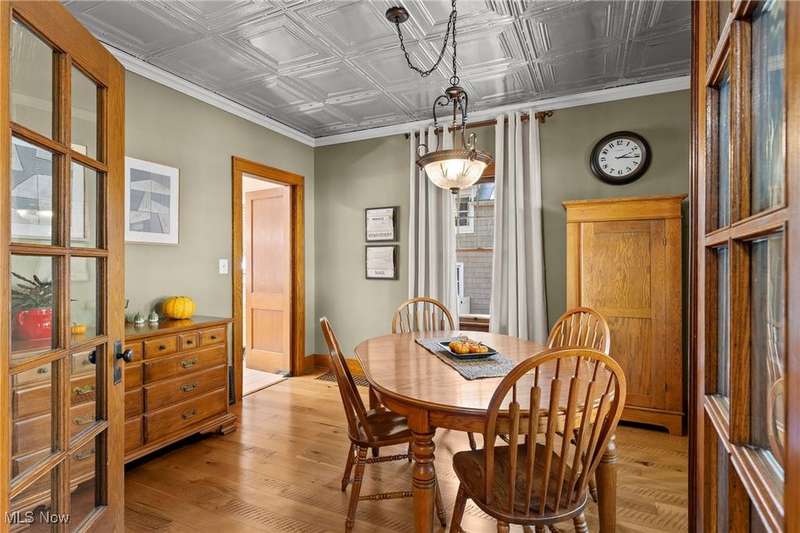 If you have ever driven down Earl Avenue in Kent's historic West Side District, chances are good that you have noticed this house. Perched atop a hill on this charming brick street, 510 Earl is a stunner. With the original slate roof, vinyl shingle siding and a beautifully landscaped yard, this center-hall colonial radiates elegance. As you walk through the front door you are greeted by a stately foyer. You will immediately notice the 9ft ceilings, the gleaming wood floors, the natural woodwork and how well this home has been cared for. A wide doorway opens to the living room with a woodburning fireplace as the focal point. The ceiling is pressed tin, and the fireplace is surrounded by built-in cabinets. The room feels both timeless and unexpectedly modern. French doors connect the living room to the family room. Flooded with light, this room is a lovely spot to relax. On the other side of the foyer is a large dining room with the same gleaming hardwood floors. The well-designed and wonderfully bright kitchen is at the back of the house. The custom cabinets reach all the way to the ceiling to make use of every square inch. Aside from newer appliances and updated counters, there is a fun pass-through to the back hallway. The back porch was converted to a four-season sunroom some years ago. With a modern gas fireplace for heat, you will find yourself gravitating to this room all year round. Up the natural wood staircase to the second floor. Three bedrooms share a tastefully remodeled bathroom. This large bathroom offers a separate shower, stylish claw-foot tub, and plenty of storage space. All three bedrooms are tastefully finished with original doors and big windows. In addition, there is a small nursery between the front two bedrooms. This small room would make a wonderful office or study nook. Outside, a retractable awning brings shade to the brick patio. An oversized two car garage has workshop space. This home is an absolute jewel. Come see for yourself.