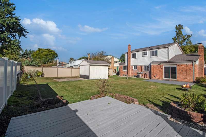 Welcome home to this charming colonial offering plenty of room to spread out and enjoy! The primary suite comes complete with its own private full bath, giving you the retreat you deserve. The kitchen features ceramic tile floors, granite countertops, and ample cabinet space, perfect for cooking and gathering. Relax by the cozy fireplace in the family room or enjoy additional living space in the bright front living room. The partially finished basement is ready for your finishing touches—perfect for a rec room, office, or home gym. Outside, the fenced yard offers space for pets, play, or entertaining and a shed to store toys or tools. Conveniently located near restaurants, shopping, and parks, this home is in the sought-after Plymouth/Canton School District—a win for both comfort and location!