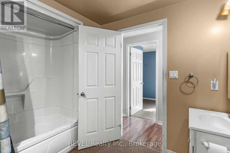 Welcome to 5016 Gage Court, a charming semi-detached raised bungalow perfectly positioned on a quiet cul-de-sac in one of Niagara Falls' most sought-after residential pockets. This home presents an exceptional opportunity for buyers who value both comfort and potential - a solid foundation with endless possibilities to personalize, modernize, or invest for future growth.Step inside and immediately feel the warmth of the open-concept main level, where natural light pours through large front windows, highlighting the generous living and dining areas. The kitchen offers ample cabinetry and counter space, seamlessly connecting to the heart of the home - ideal for family living or entertaining guests. Originally designed as three bedrooms, the home has been converted into a two-bedroom layout featuring a massive primary suite that spans the width of the home, creating a rare and inviting retreat.The lower level expands the living space with a large recreation room anchored by a classic brick fireplace - a perfect setting for cozy nights in or a future in-law suite for extended family. The unfinished portion of the basement offers excellent storage and workshop space, ready for your personal touch.Outside, enjoy a private fenced backyard surrounded by mature trees and a peaceful court setting. The location couldn't be better - close to schools, parks, shopping, and highway access, all while maintaining the serenity of a quiet family street.5016 Gage Court combines space, opportunity, and location - a home ready to evolve with you, whether you're settling in, investing, or envisioning your next renovation masterpiece. (id:7434)