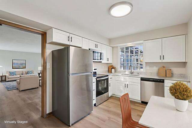 This move in ready brick ranch is waiting for its next chapter. Enjoy cooking in a new kitchen with slate counter tops and stainless steel appliances. The bathrooms have been updated to create a warm modern feel and look. The dining and living rooms are combined for an open concept feel. The 3-season room offers plenty of windows and screens without the bugs. The lower level rec room is a great get away from the rest of home. Low maintenance exterior. Newer plumbing, windows, roof, furnace and water heater. Just move right in. Welcome home.