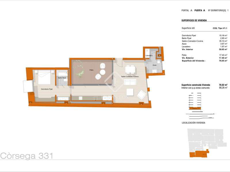 Corcega 331 is a very special new development located next to the prestigious Passeig de Gracia and Avinguda Diagonal, two of Barcelona's most popular and important boulevards, home to many architectural marvels and an abundance of services, restaurants and high-end shops. This building, with an attractive façade, has undergone an ambitious refurbishment project which has resulted in contemporary, avant-garde interiors with state-of-the-art materials by brands such as Gunni&Trentino, green areas and all modern urban comforts, making it a true oasis at the heart of the city. Parking spaces are provided in the same building and the ground floor provides exceptional communal facilities, including a gym, spa, pool, a lounge and a coworking area. The development offers this exquisitely finished brand-new home with an open-plan living room, dining room and kitchen, a guest toilet, laundry room, a bedroom, bathroom and a private patio. These spacious, light-filled homes feature open-plan living spaces with modern, functional kitchens. The bedrooms have been designed to maximise comfort and peace, for a good night's sleep and the bathrooms are finished with elegant, high-end materials, fixtures and fittings. Please contact us for further information regarding this outstanding new residences with excellent communal facilities, in an enviable location in the city.
