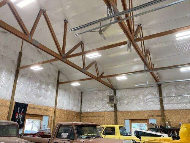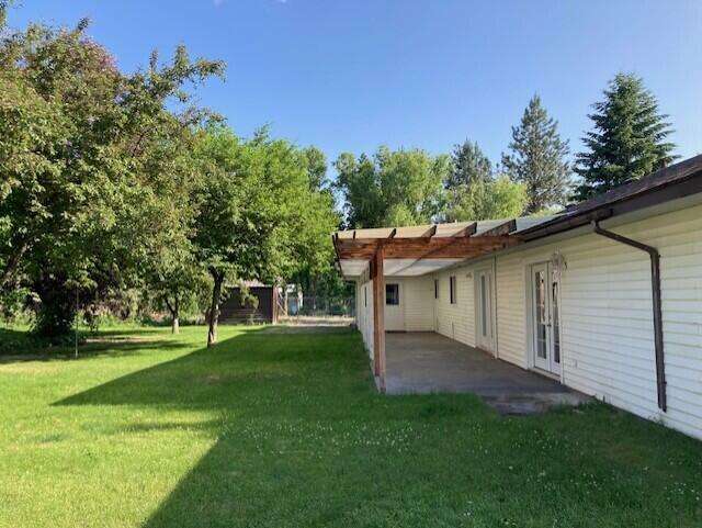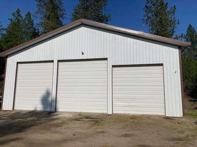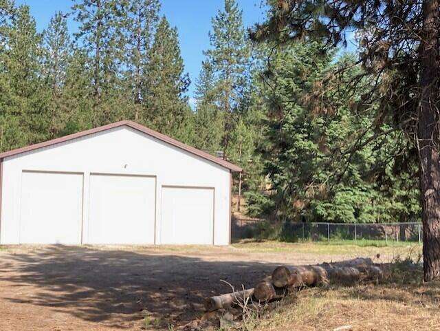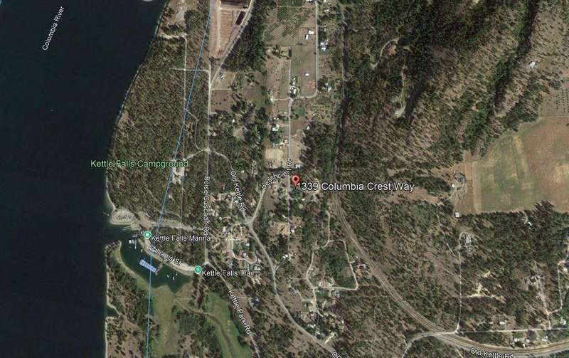 Single-level home near Kettle Falls and Lake Roosevelt on 1.45 acres. Large det-shop PLUS att 3-car tandem garage, 3 bedrooms and 2 baths. There is a large kitchen w/abundant cabinets, vast counters and the appliances are included. The dining room has a bay-window and the living room has double glass-doors to the cvd patio w/a chain-link fenced yard w/shed and sprinkler-system. The primary bedroom has large wall closets, French-doors to the back yard and a large bathroom. The home has instant H2O tank, Radiant-gas heating, FA cooling and water filter. The shop is a 36' deep x 48' wide, gas thermostat-control heating on the ceiling, fully insulated w/220 outlet, two 14' roll-up and one 12' roll-up, concrete, and 16' ceiling. It is on its own parcel and power meter. Located near the Marina. The 3rd bdrm/office does not have a closet.