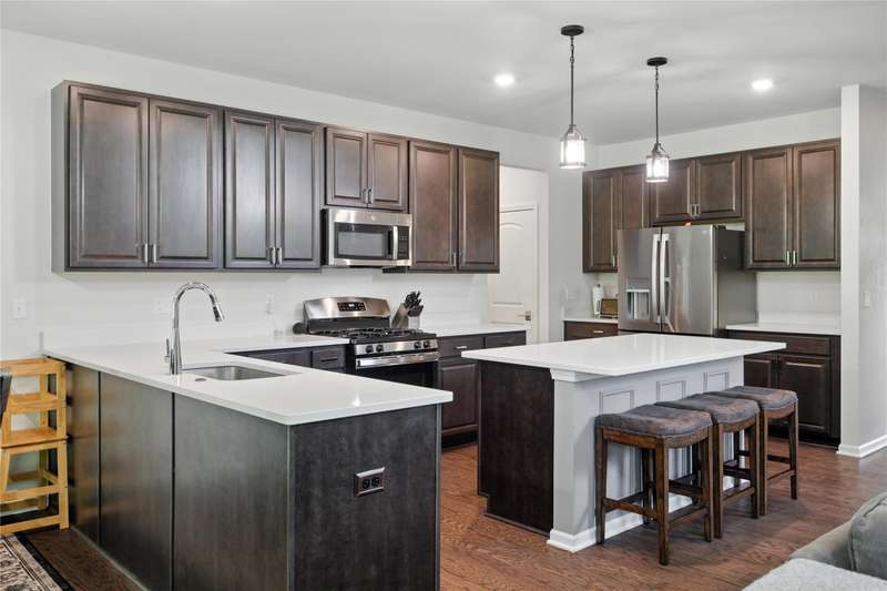 Priced below original purchase price!! Embrace the essence of a new construction home without the wait. Discover the epitome of luxury and modern convenience in this exceptional residence, tailored for discerning executives, those in the midst of relocation, or growing families seeking a harmonious blend of comfort and sophistication. This stunning 5-bedroom, 4.5-bathroom home is a masterpiece of design, boasting $150,000 in premium upgrades and state-of-the-art smart technology. Step into an elegant atmosphere where engineered hardwood floors grace the main level, complemented by the warm embrace of a gas fireplace in the great room. The office/den, adorned with French doors, provides a serene retreat for productivity. The heart of the home is the chef's dream kitchen, featuring quartz countertops, stainless GE appliances, and upgraded cabinets and fixtures that promise both style and function. Comfort meets luxury with a first-floor in-law suite and four additional bedrooms on the second level, including a sumptuous master enclave. Convenience is at your fingertips with a second-floor laundry room, a tankless water heater, and a deep basement prepped for a full bath and egress window, ready for your finishing touch which complements the zoned HVAC for unparalleled efficiency. The sellers' brief four-month tenure means you'll enjoy a practically untouched abode. Smart house controls, Sonos speakers, smart fans, and a whole-home mesh WiFi system ensure that your environment is always at the peak of innovation. Nestled on a premium lot backing to serene woods, the property includes professionally installed sod and a sprinkler system. The 3-car attached garage, with insulated walls and doors and with smart WiFi openers. complements the zoned HVAC for unparalleled efficiency. In this exquisite home, every detail is meticulously crafted for ultimate comfort and luxury—ready for you to make it your own.