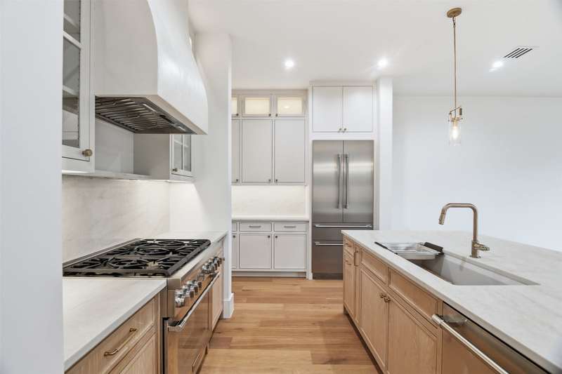 This architecturally impressive new build in Elm Thicket offers a sophisticated blend of modern and transitional style on a premier corner lot. From the moment you step inside, the home unfolds with a prominent LED staircase, light-filled layout with contemporary windows, highlighted by custom woodwork, designer finish-outs, and an elegant cast-stone fireplace that serves as a true focal point. The gourmet kitchen is crafted for both beauty and function, featuring a spacious island with Taj Mahal countertops and a dedicated bar area ideal for entertaining. The flow of the home is enhanced by thoughtful design details that elevate everyday living. Upstairs, the serene primary suite provides a luxurious retreat complemented by two additional bedrooms offering flexibility for family, guests or work needs. With its fully bricked exterior, striking presence, and elevated interior finishes, this home delivers a level of sophistication rarely found in a lease property. This is an incredibly opportunity to lease a high-end new build that you won't want to miss!