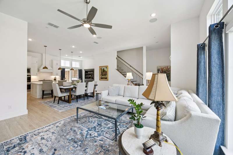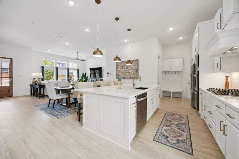 Why wait for a build out and live through constant construction all around you when you can move into this beautiful open floor plan townhome immediately!? Beautiful entry opens to the living room and dining areas. The gourmet kitchen has SS appliances, large quartz center island with breakfast bar, generous cabinet space, walk in pantry as well as a breakfast nook or sitting area. A mud room leads to the upgraded finished bonus room which is very versatile and could be an office, work out room or a play area, that leads to a patio and fenced in turf yard. The second level greets you with a large loft that would be a great game room or office. The large primary bedroom suite offers a sitting area or den and a ensuite bath with double sink, separate shower and tub plus 2 huge walk in closets. It also has a private porch to enjoy your breakfast coffee or a relaxing cocktail. There is a conveniently located utility room off the primary bedroom too. The two secondary bedrooms share a jack and jill bath. Please refer to the transaction desk to see the over $50,000 in upgrades including upgraded florring, motorized blinds, double oven, updated fixtures and lighting, fans, the finished bonus room and more.