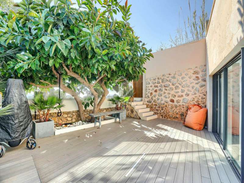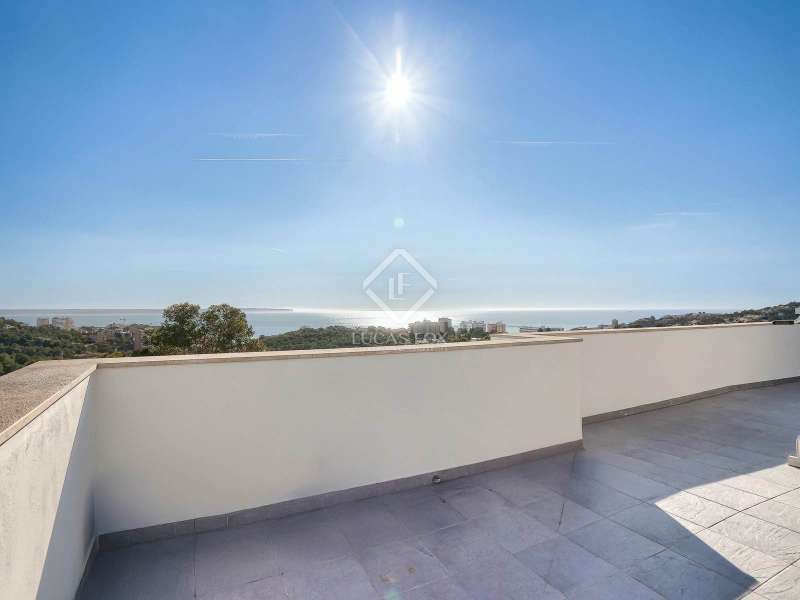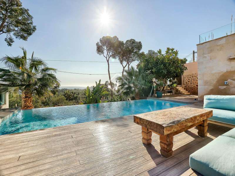Perched gracefully on the scenic hills of Genova, Mallorca, this modern villa presents a blend of elegance and tranquility. With a generous living area of approximately 273 m², this residence offers stunning panoramic sea views. The main house boasts a spacious, open-concept design that seamlessly connects indoor and outdoor living. Large floor-to-ceiling windows flood the interior with natural light, emphasizing the clean lines and minimalist aesthetics that define the home's architecture. The heart of the property is an expansive living room, which flows into a kitchen equipped with high-end appliances.. This exquisite property includes four elegantly appointed bedrooms, each thoughtfully designed with ample storage and en-suite bathrooms, ensuring the utmost comfort and privacy. Beyond the main living quarters, a charming guest house provides a private retreat for visitors, complete with its own living area and bedroom, making it ideal for hosting family or friends. Outdoors, several expansive terraces surround the property, offering a variety of spaces for relaxation and dining al fresco. The centerpiece is an infinity pool, creating a serene oasis where one can unwind while taking in the magnificent coastal vistas. With its modern architecture, premium amenities, and unparalleled sea views, this villa is more than just a home—it's a sanctuary where contemporary design meets the timeless beauty of the Mediterranean landscape.