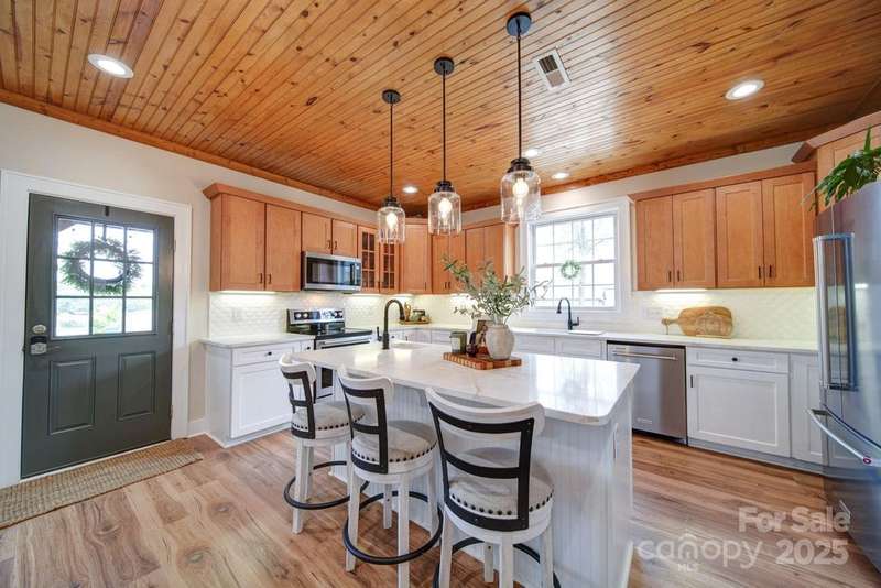 Welcome to your dream property in peaceful New Salem! This beautifully renovated home sits on just under 3 acres of scenic, partially pastured land?perfect for both relaxation and recreation.Step inside to a stunning, fully updated main level featuring quartz countertops, a stylish tile backsplash, stainless steel appliances, and durable LVP flooring throughout. The spacious layout offers comfort and modern elegance in every corner.Outside, enjoy exceptional amenities designed for country living and entertaining. The property includes a concrete drive, 2-car garage, a 2-car carport, and a metal building for extra storage or a workshop. The barn and fenced pasture are ready for livestock, adding functionality and charm.Summers are a dream with the brand-new in-ground pool, surrounded by beautiful rock-salt finish concrete, a covered porch, and a large patio?ideal for hosting gatherings or relaxing in your private oasis.Additional upgrades include a whole-house water filtration system with leak detection sensors for added peace of mind.This property truly has it all?modern updates, outdoor living, and space to spread out. Don't miss the chance to make this New Salem gem your forever home!