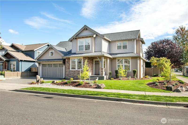 Immaculate maintained & recently refreshed 2,650 sf, 3 bed +office +bonus custom home spares no expense. From artisan Hardie siding w/ cedar facia and window wrap to solid 7 foot Douglas Fir doors and wide-plank hardwood floors, every detail reflects quality. The chef’s kitchen features Wolf and Miele appliances, quartz countertops, full height tile backsplash & custom cabinetry. Luxurious baths offer radiant floor heat and premium tile work. Enjoy upgrades incl custom lighting, Hide-A-Hose vacuum system, upgraded insulation, security alarm, lifetime roof, heat/AC & garage with built in cabinetry. Insulated and lighted shed provides plenty of room for all the extras. Set on a professionally landscaped lot, built to impress and last.