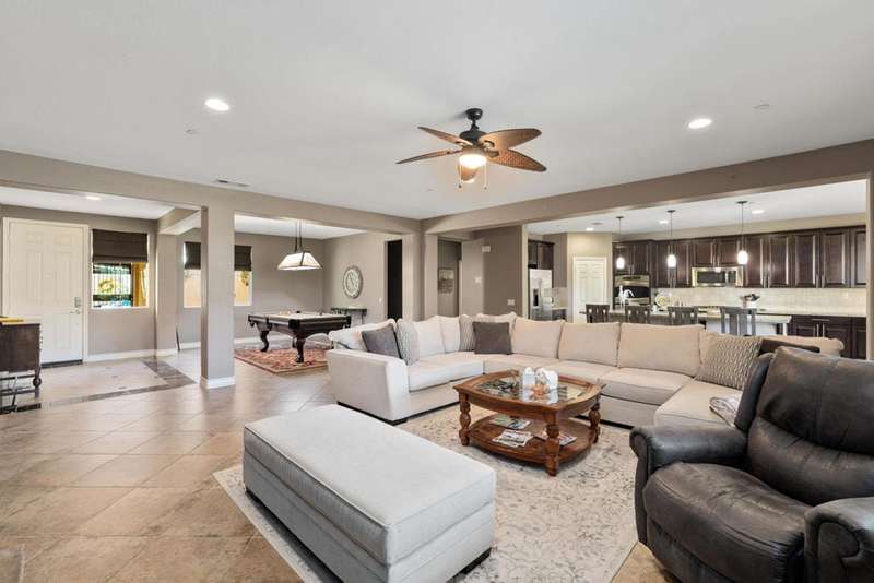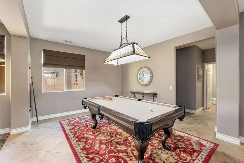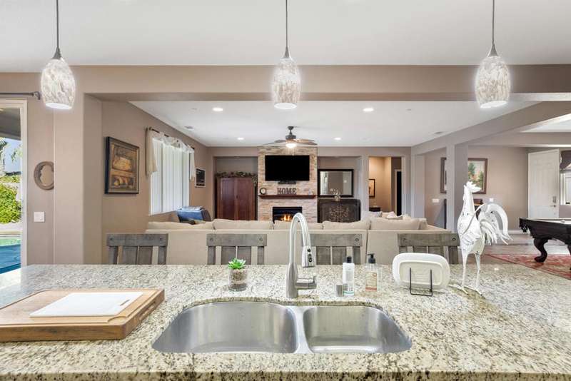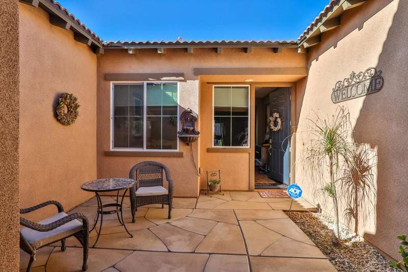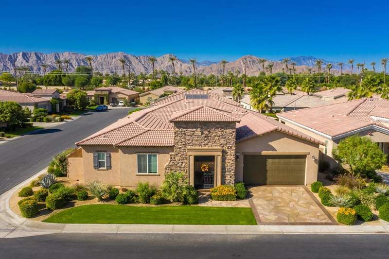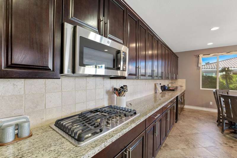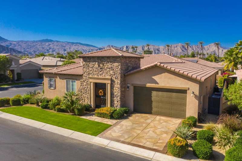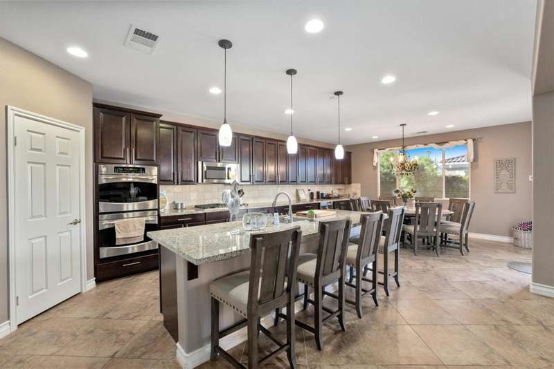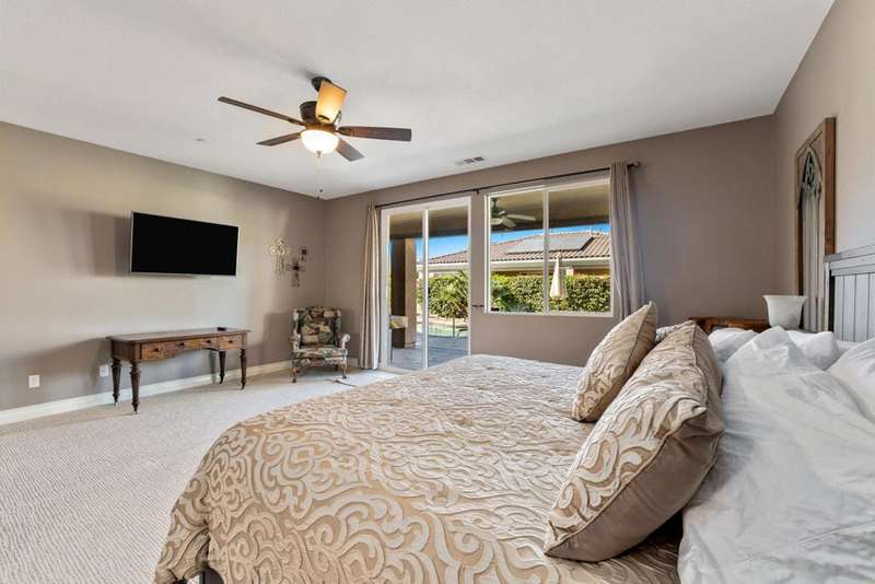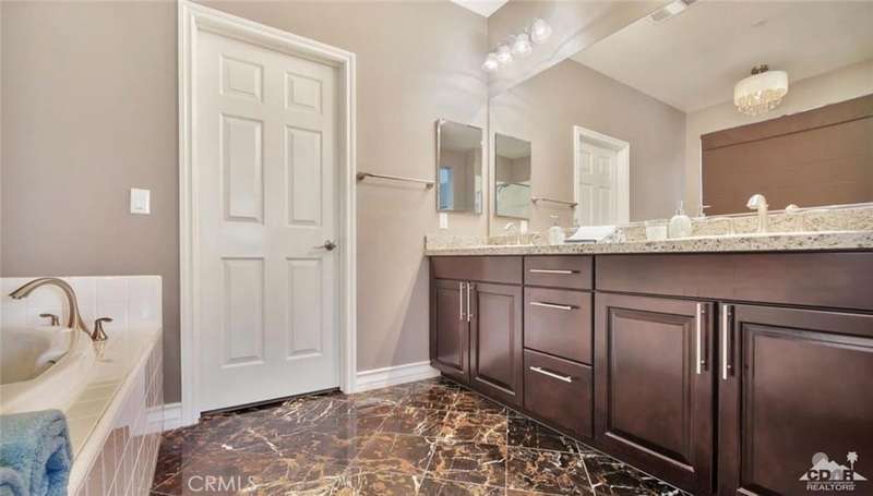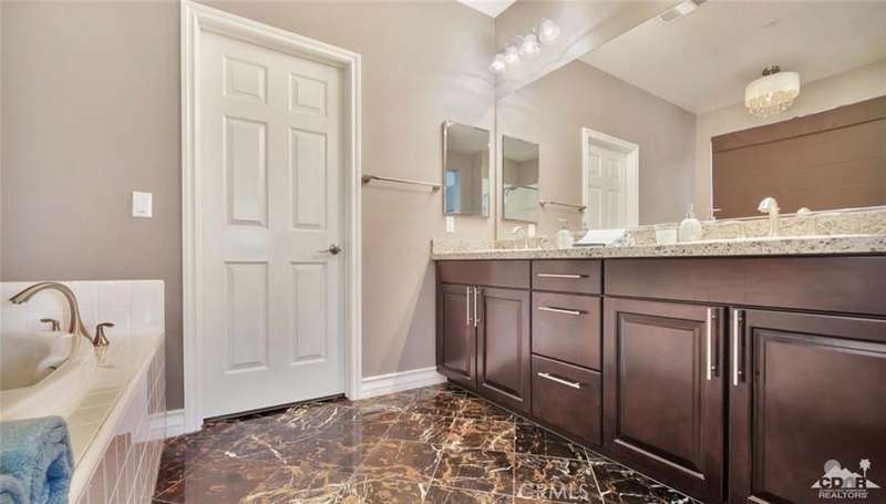 ALL DATES AVAILABLE!! The Bridge at Jefferson, a highly desirable gated community, enjoy the beautifully landscaped private backyard, with saltwater pebble-finished pool & spa, w/waterfall and long covered patio, which is ideal for entertaining while you relax and take in the mountain view. This open floor plan home offers a great room & impressive chef's kitchen that includes SS appliances, double ovens, gas cooktop, beautiful espresso cabinets, stunning granite counters, large eating area. The inviting great room, which opens to the dining area, features stacked-stone fireplace with media niches and a view to your pool. The master suite is sure to please with backyard access, a master bath with dual sinks, jetted tub, marble flooring and huge walk-in closet. This beautifully presented home is located on a corner lot with 2764 SF, 4 Bdrms & 4 baths & offers a split master w/guest rooms on the other side of the home. This is the perfect vacation home. (120 day Minimum booking)