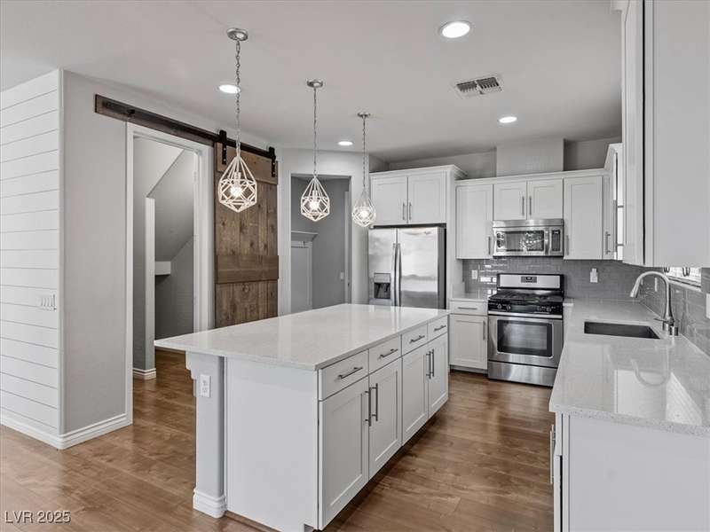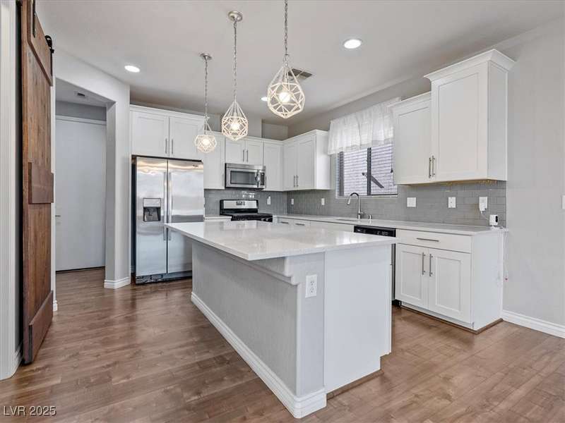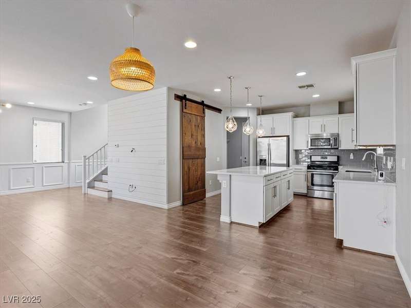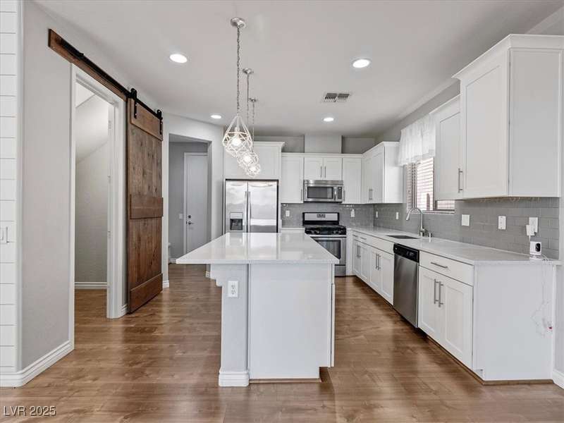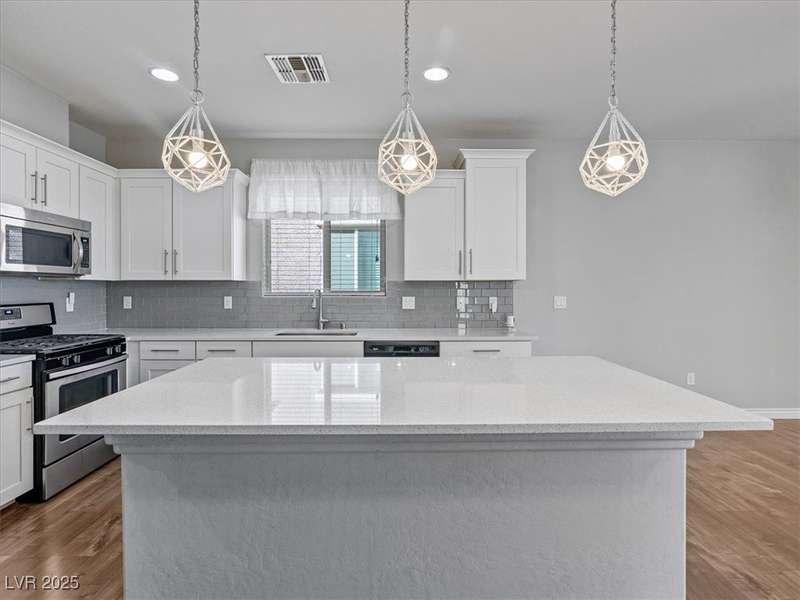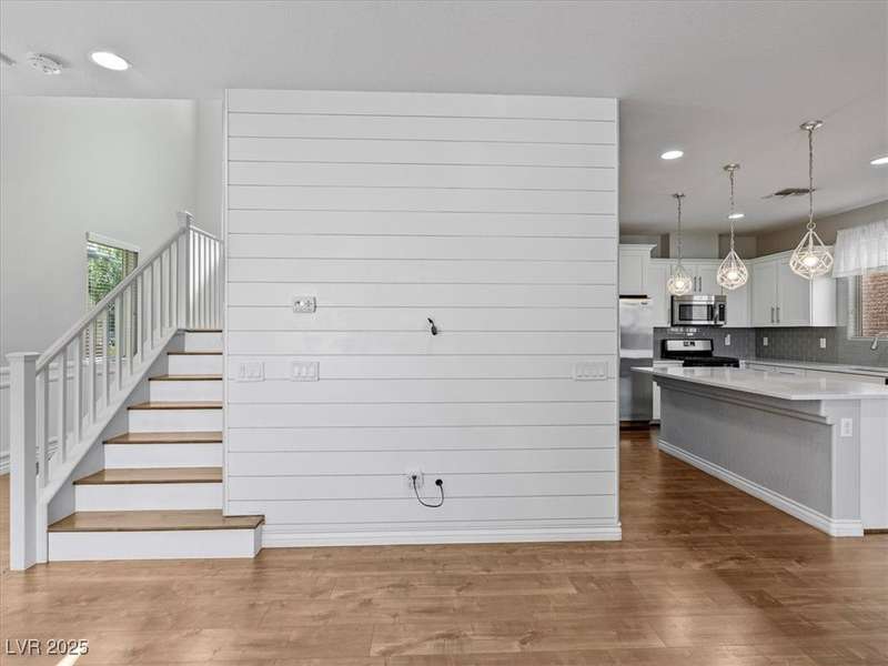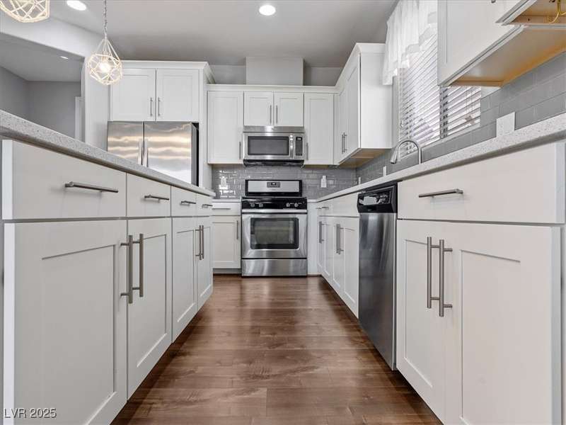Beautiful 3 bedroom, 2.5 bath home with 2 car garage located in the desirable southwest area. The entryway and living room feature charming wainscoting and luxury vinyl flooring throughout the first level. The modern kitchen boasts white shaker cabinets, quartz countertops, stainless steel appliances, and a spacious walk-in pantry. Upstairs offers cozy carpeting, a large primary suite with an ensuite bathroom featuring dual sinks, a separate shower, and a walk-in closet. Convenient upstairs laundry room. Enjoy a lovely backyard with a covered patio perfect for relaxing or entertaining.