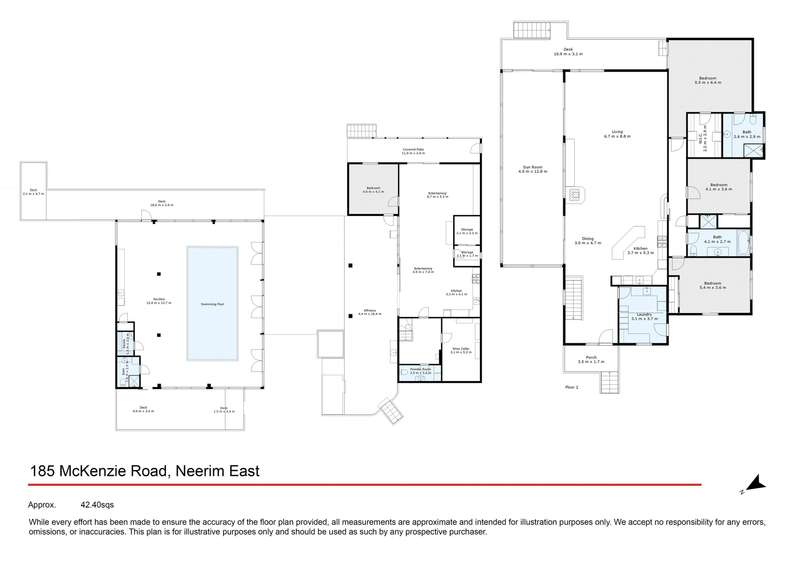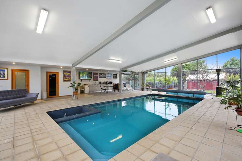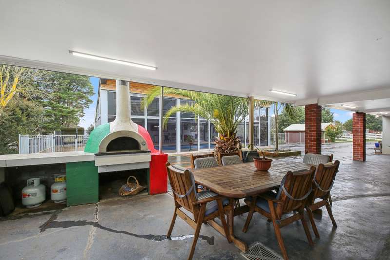 Located in the picturesque Neerim East district on a sealed bitumen road with feature boundary trees is this outstanding 20.85 hectare (51.5 acre) country holding afforded a scenic panorama over the surrounding countryside and Baw Baw Ranges. A full concrete tree lined driveway provides entry to this impressive and substantial custom built residence surrounded by established and mature garden surrounds. On entry, you will be drawn to the soaring raked ceilings and modern appointments with quality finishes throughout a well-structured floor-plan. Boasting an expansive 40 plus squares of living, notable features include 4 bedrooms, ensuite, 3 toilets, oversize North facing living bathed in natural light, expansive open plan family room, custom designed kitchen, expanse of polished timber flooring, lower-level entertaining, wine cellar and cool room. Solid fuel heating and split system cooling maintain your comfort level inside while externally the fully enclosed pool pavilion with in-ground solar heated pool, spa, sauna and kitchenette are very inviting. The cosy and separate 2 bedroom B&B accommodation provides for an enjoyable country stay over plus the property has a current planning permit for two extra B&B's. Excellent vehicle accommodation, abundant parking, workshop with open fire place, machinery shed, undercover stockyards and solar panels with battery are also welcome inclusions. The picturesque acreage is fenced into 6 main paddocks, has stands of trees, shelter belts, dam and a creek running through the treed gully. Complete with decked viewing platform, this impressive and remarkable property is something you just have to see. Contact Hockingstuart Warragul to arrange your private inspection.