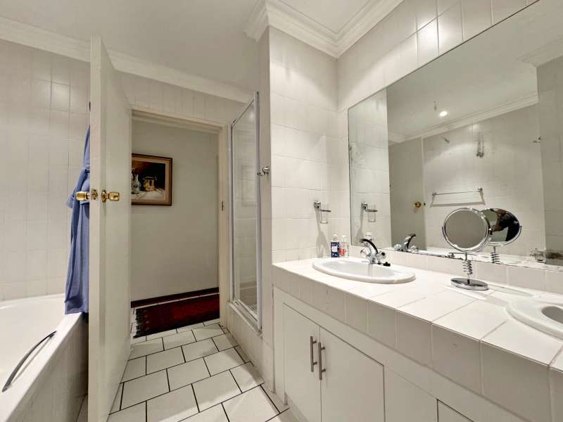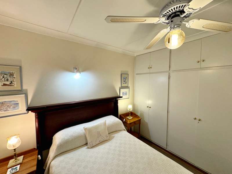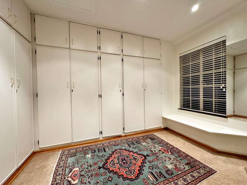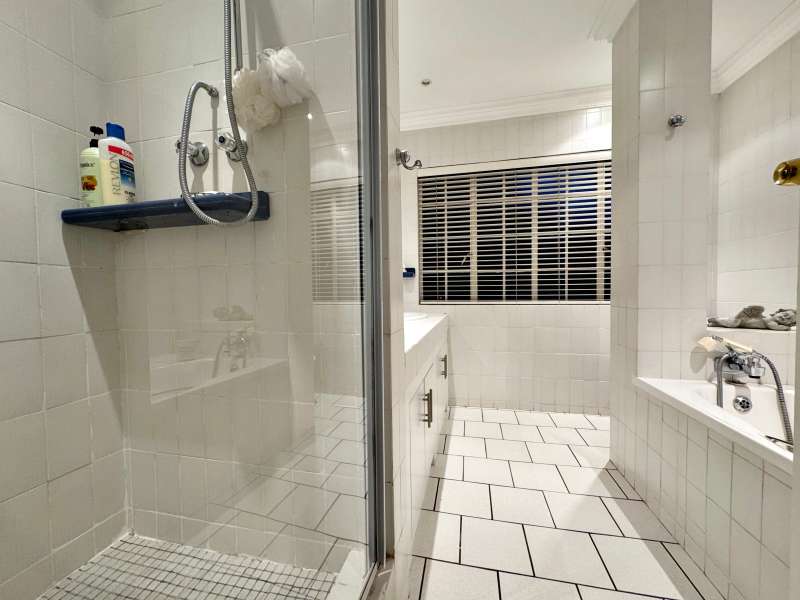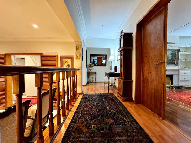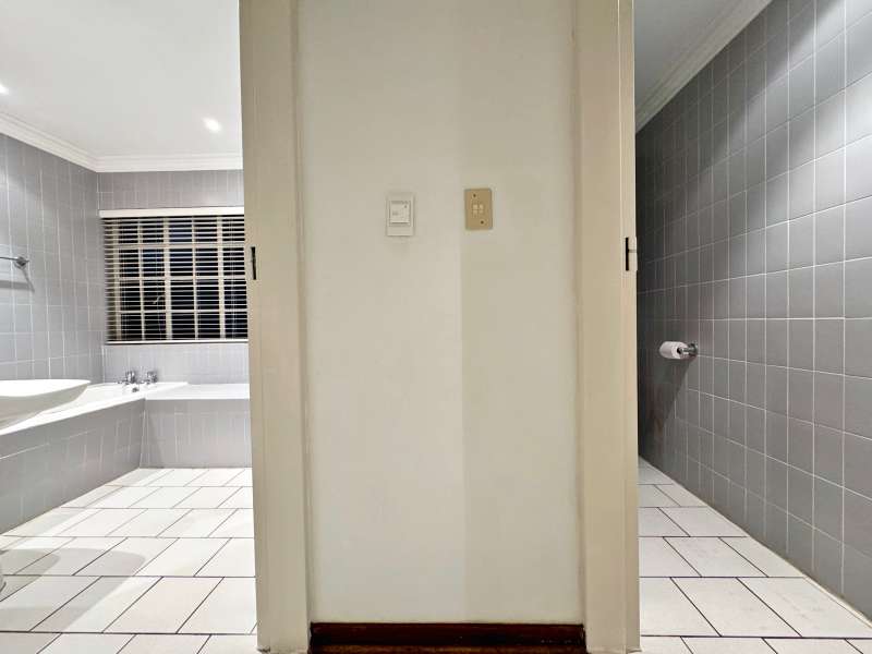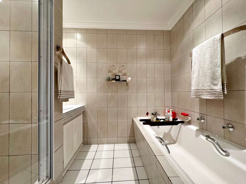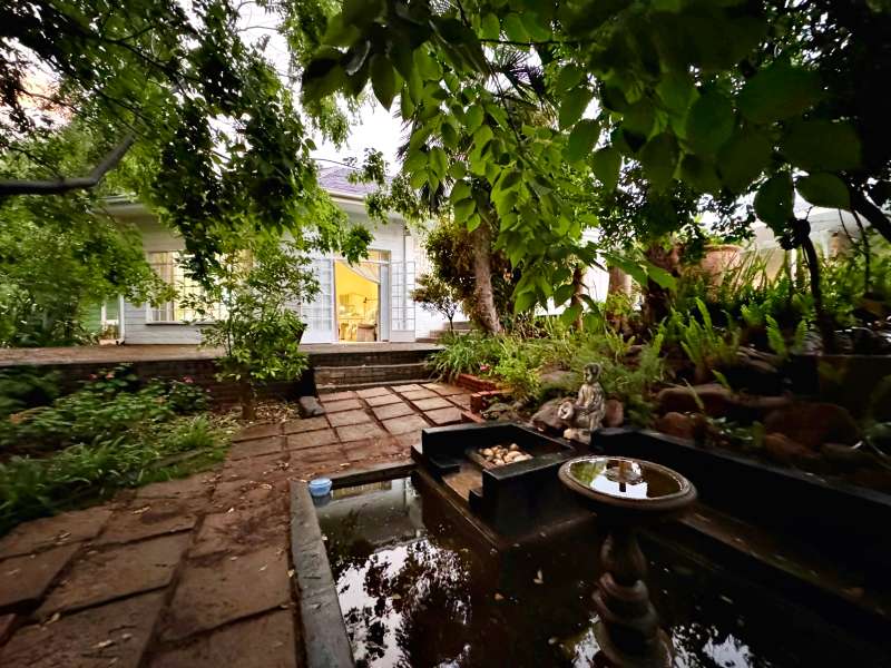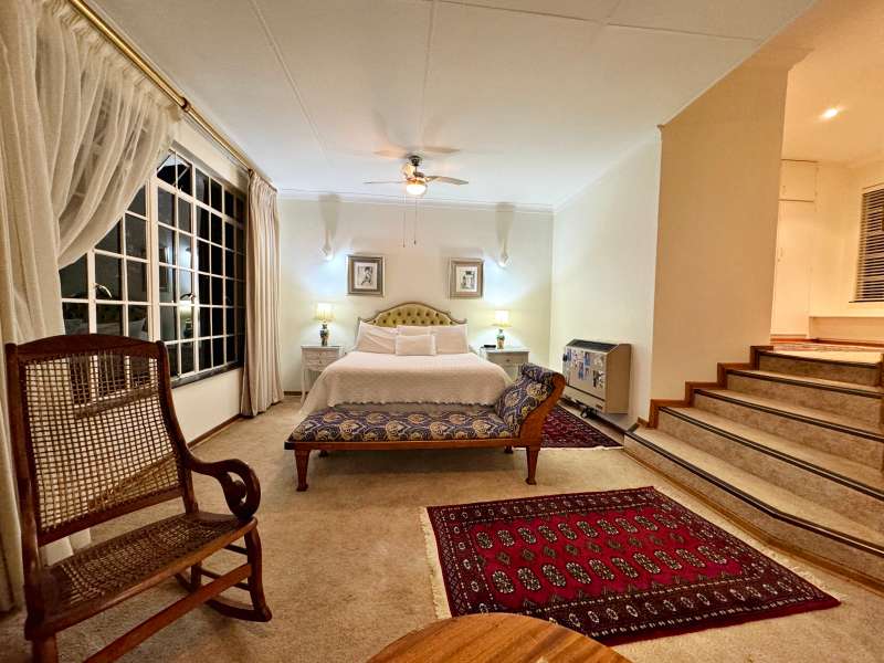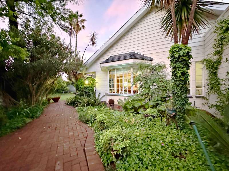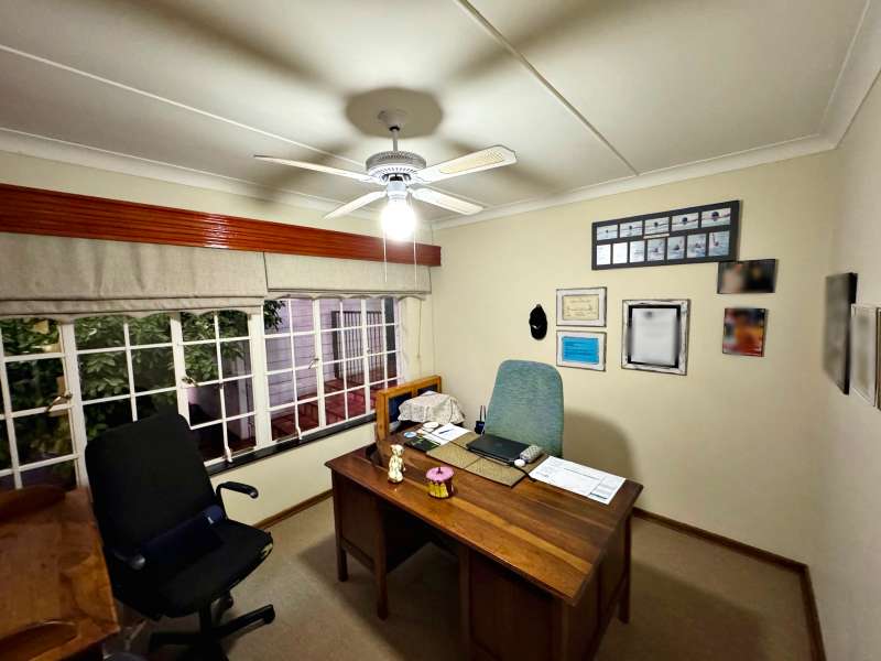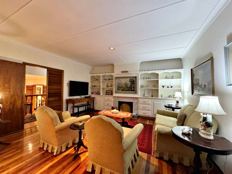 Nestled in a peaceful crescent, this impeccably maintained property with its classic slate roof and lush, tree-filled garden offers the perfect blend of comfort and tranquility. The welcoming entrance hall leads into a spacious lounge area with built-in fireplace and wooden floors, adjacent to the dining room with bay windows overlooking the lushes garden. The TV room flows seamlessly onto an undercover patio with a built-in braai next to the sparkling swimming pool, ideal for entertaining. A formal study with built-in cupboards is ideal for working from home. The well-appointed kitchen with breakfast nook, boasts an eye-level oven, pantry storage and a convenient scullery, with an additional outside laundry area for practicality. The main bedroom is a private retreat with a walk-in closet, en-suite bathroom and direct access to the patio, pool and garden. The other 3 bedrooms share two and a half bathrooms. Additional features include a double garage, double covered parking, domestic quarters, pre-paid electricity, municipal water, a well equipped with a pump for irrigation purposes and a back-up water tank as well as an alarm system for peace of mind. This exceptional home is perfect for those seeking a quiet yet luxurious lifestyle surrounded by nature.