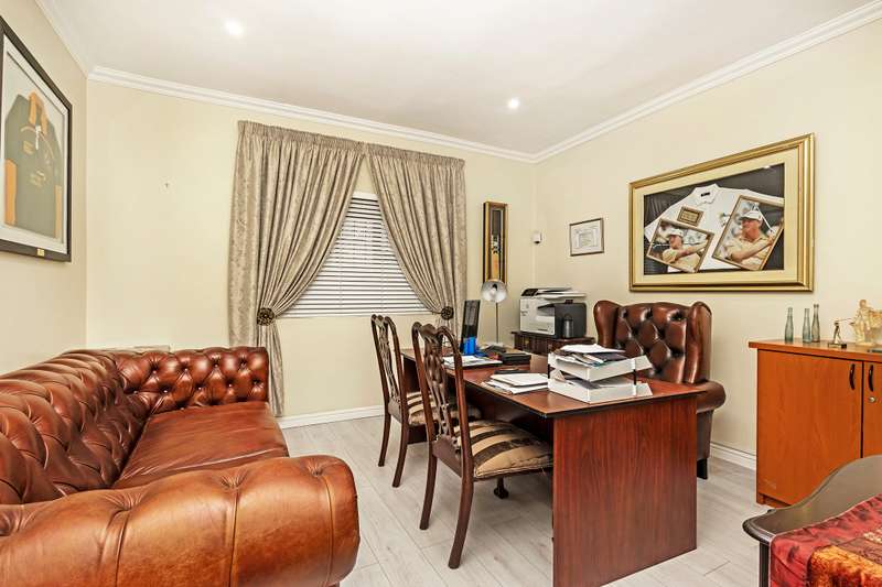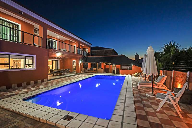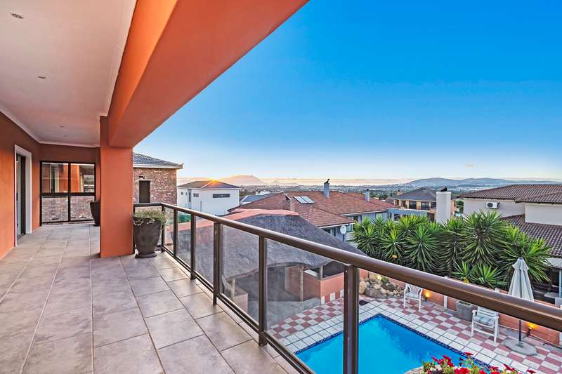 Excellent Investment Property With Guest House Potential. This 4 bedroom home is the epitome of luxury. Situated in one of the finest areas in Kuilsriver and surrounded by stunning views of Table Mountain and Stellenbosch Mountains. Upon entering the home you are greeted by the breathtaking entrance. Leading off the entrance is a study, formal lounge with fireplace, dining area and stunning fully fitted kitchen with caeser stone tops. From the dining area doors lead to a covered patio, sparkling pool and state of the art lapa, ideal for entertaining. From the entrance stairs lead upstairs to a family /TV room with doors leading to a private patio with amazing views. On this level you will also find four generously sized bedrooms with en-suite bathrooms as well as a library/study. The family room has a fireplace, perfect for cozy Winter evenings. This property also has 2 double automated garages. Please don’t hesitate to contact me.