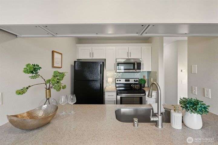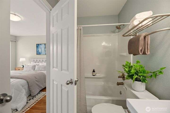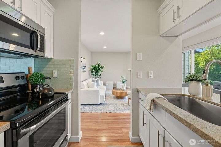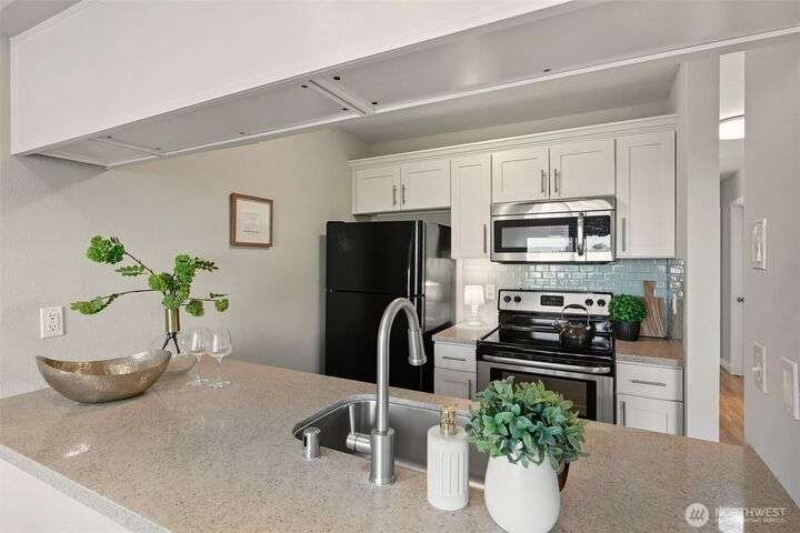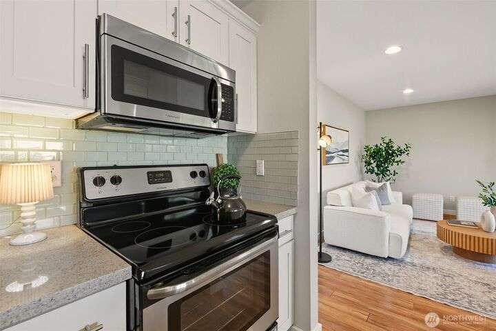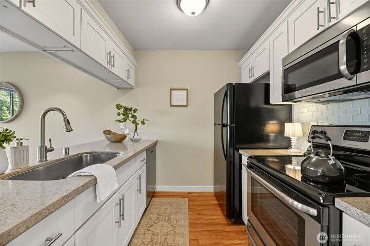 {{ Stylish Top-Floor Living in Renton Highlands!}} Step into this beautifully upgraded, turn-key 2BD home feat. a fully remodeled kitchen w/ quartz counters, shaker cabinets & designer glass tile backsplash. The spa-like bathroom, wide-plank floors & fresh paint create a light, modern vibe throughout. Enjoy a spacious living rm w/ cozy fireplace, a private balcony off the primary suite & a flexible layout filled w/ natural light. With two balconies, a large laundry rm, plenty of storage & HOA dues covering W, S & G, living here is effortless. Prime location near Lake WA, The Landing, Newcastle Commons, shopping, dining & easy freeway access to Bellevue & Seattle. Two assigned parking spots. Pre-inspected with no rental cap—move right in!