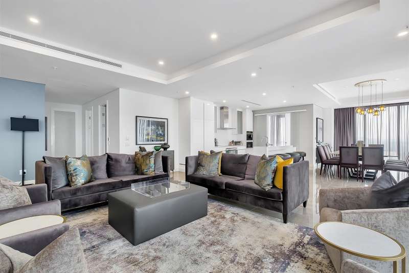 4 bed, 4 en suite bath designer furnished apartment on the 35th floor, beautifully presented, with magnificent views. Stunning marble floors in receptions and carpets in bedrooms, high end finishes, soft close cupboards, wardrobes and doors, and temperature controlled throughout. Open plan chef’s Caesarstone kitchen, glass hob and all integrated appliances. DSTV and fibre ready. Facilities include fabulous rimless pool, high speed elevators, multiple conference rooms, crèche, board rooms, exclusive Arum restaurant, Octo bar, Leo lounge & Deli, lovely gardens, well equipped gym, spa, coffee shop, exclusive nightclub, decent size storeroom, 2 basement parking bays and state of the art security. This apartment truly resembles a dream come true. Situated within easy walking distance to Crawford, Investec, Benmore shopping centre, restaurants, the Sandton CBD and Gautrain. Served by a good road network. Available Immediately
