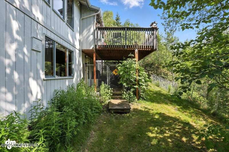 Creekside Living with Mountain & Inlet Views in Chugiak! Perched above Peters Creek with sweeping views of the Chugach Mountains and partial inlet vistas, this two-story home blends comfort, privacy, and Alaska's natural beauty. Just 1 mile from the Peters Creek Trailhead and adjacent to Chugach State Park—one of the four largest in the U.S.—outdoor adventure is right outside your door. The upper level features an open living space with a large kitchen, dining area, and living room that opens to a spacious back deckperfect for dining while listening to the creek below. Three bedrooms, including the primary suite, and two full baths complete the main floor. Downstairs offers a huge flex space with private access, a separate bedroom, and two three-quarter bathsideal for a home theater, office, rec room, or in-law setup. Note: The home has 4 bedrooms, but the septic system is rated for 3 bedrooms. A second deck above the garage provides a peaceful spot to enjoy the sounds of nature or watch the northern lights dance overhead. Recent Updates & Extras: ~ High-end electronic gate (works in all weather!) ~ Newer well pump (3-4 years old) ~ Newer kitchen appliances (2-3 years old) ~ Water-resistant LVP upstairs, waterproof LVP downstairs ~ Extra flooring for final bedroom (currently carpeted) ~ New garage door, painted garage walls Seller owns 3 adjacent lotsask about purchasing an extra one or more! A rare combination of views, space, and upgradesdon't miss this opportunity to live above the creek in beautiful Chugiak.
