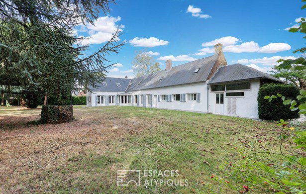 A lovely character property in the heart of Santerre: an ideal setting for a large family or a professional project. The magnificent wooded and fully fenced park is home to remarkable trees, flower beds, a vegetable garden and fruit trees. The main house: large living spaces with 70's decor The old L-shaped main building with its interior courtyard welcomes you with a large veranda that extends the kitchen and its scullery.