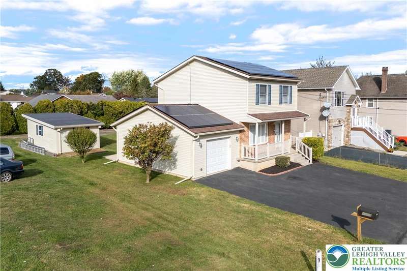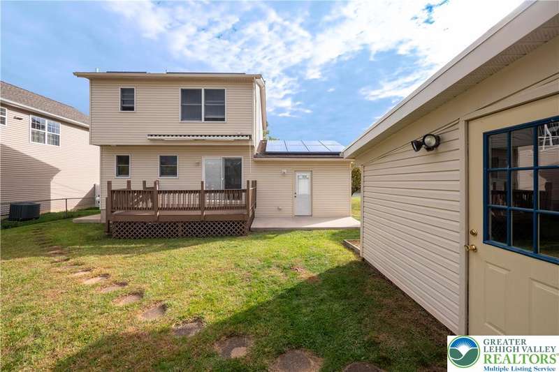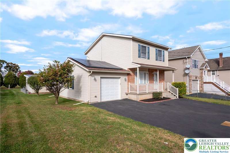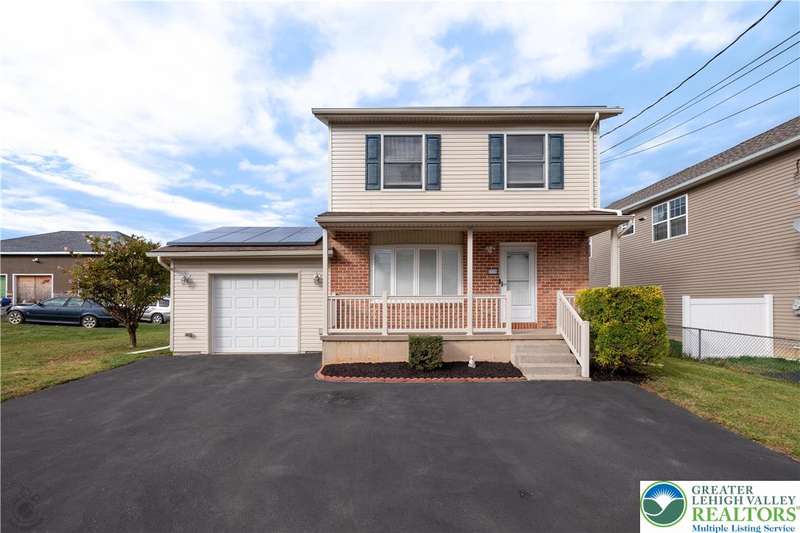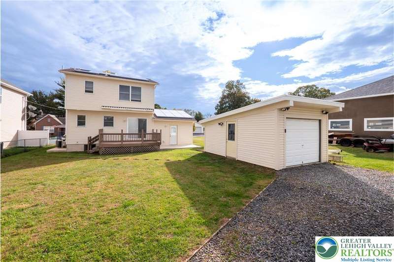 HIGHEST and BEST Monday 11/3 by 1pm.Energy-Efficient Colonial with Timeless Charm! Welcome to this beautifully maintained 3-bedroom, 1.5-bath Colonial in desirable Bethlehem Township. Outfitted with TESLA solar panels, this home offers sustainable living and modern upgrades including brand-new flooring throughout and fresh paint. The sunlit main level features a spacious living room and an open dining/kitchen area that flows seamlessly to a large deck ideal for entertaining and family gatherings. Upstairs, you'll find three comfortable bedrooms and a full bath. The fully finished basement adds extra living space with a cozy family room and a convenient laundry area. Outdoor living is a delight with a flat lot, patio, and deck complete with a retractable awning for year-round enjoyment. Parking is plentiful with a 1-car attached garage, 1-car detached garage, and a generous driveway. Located close to shopping, hospitals, and major highways, this gem offers both comfort and convenience. Don t miss out on scheduling your showing today!