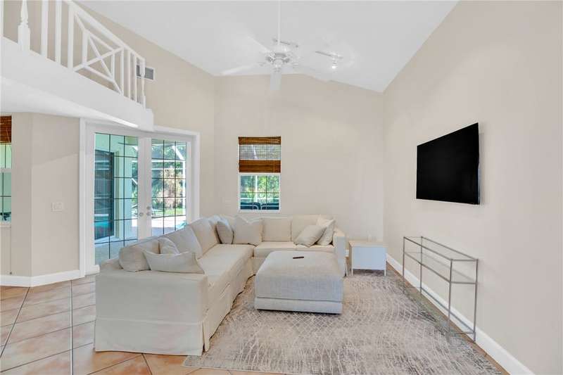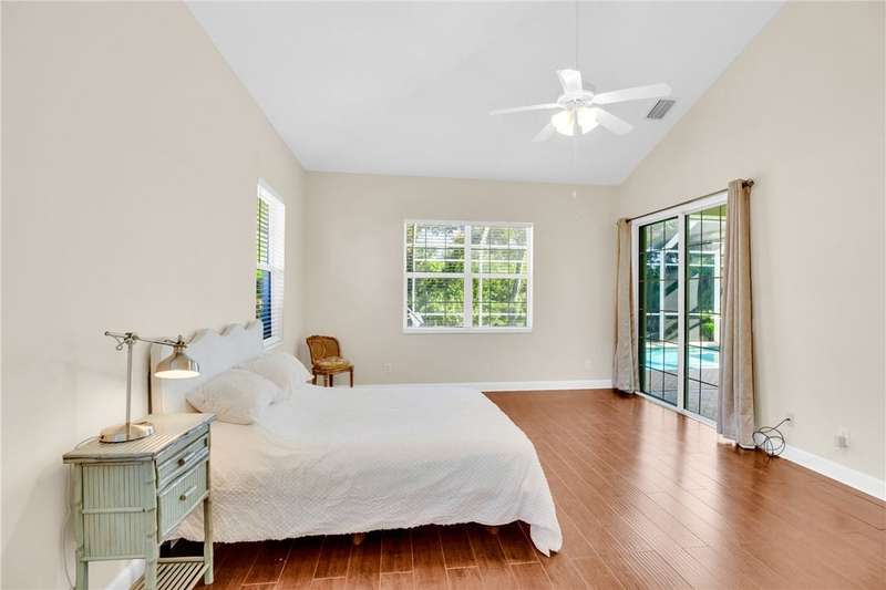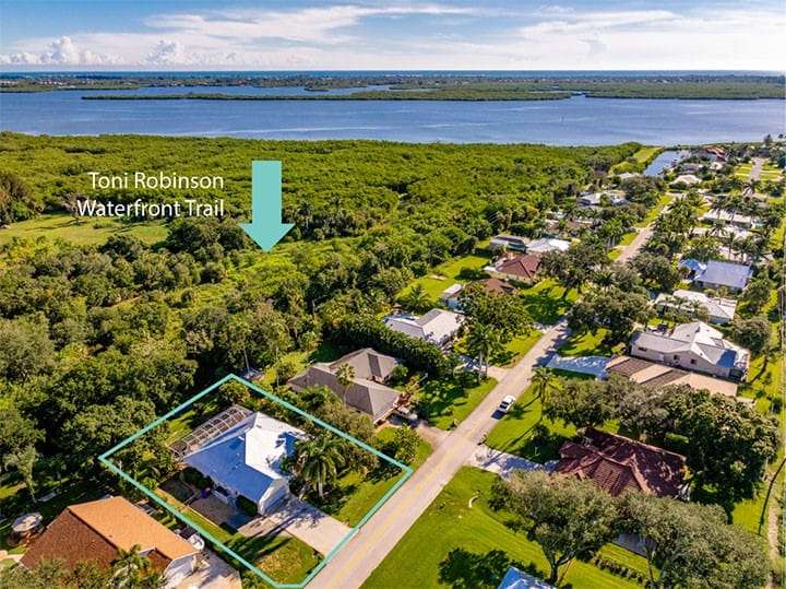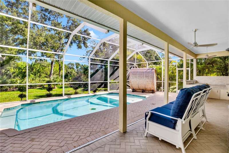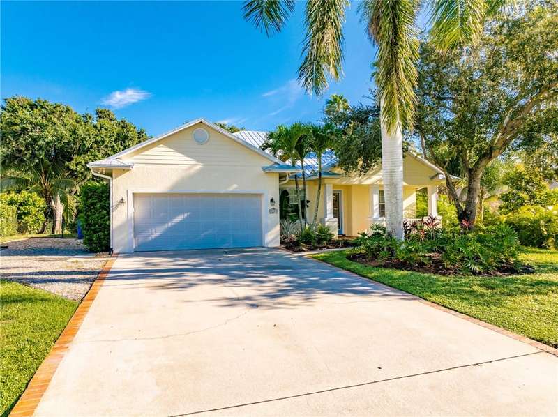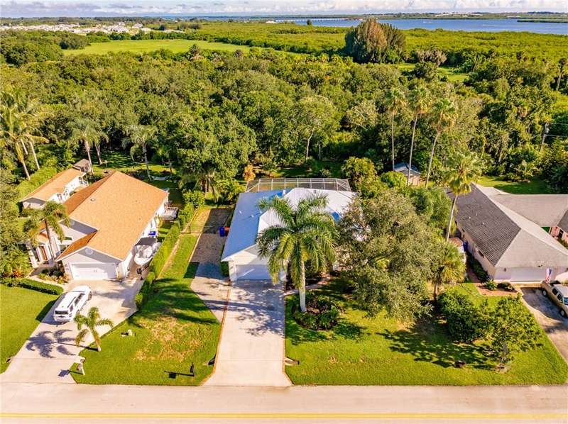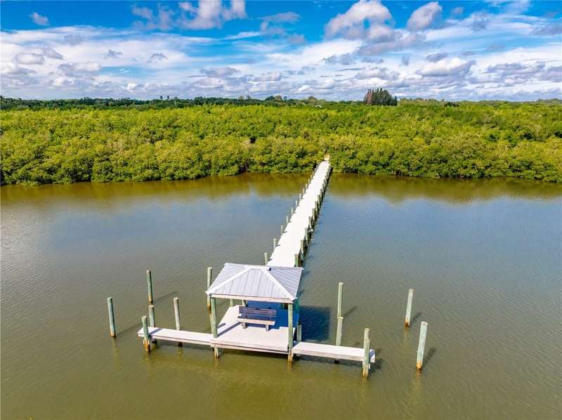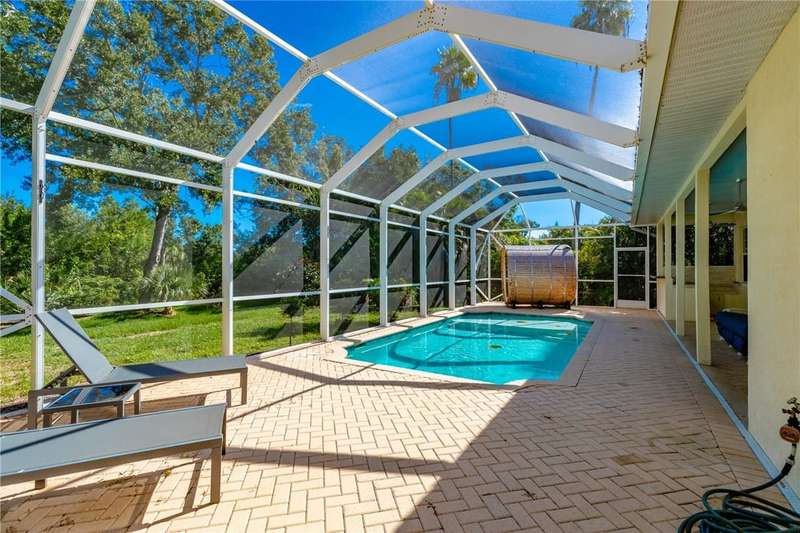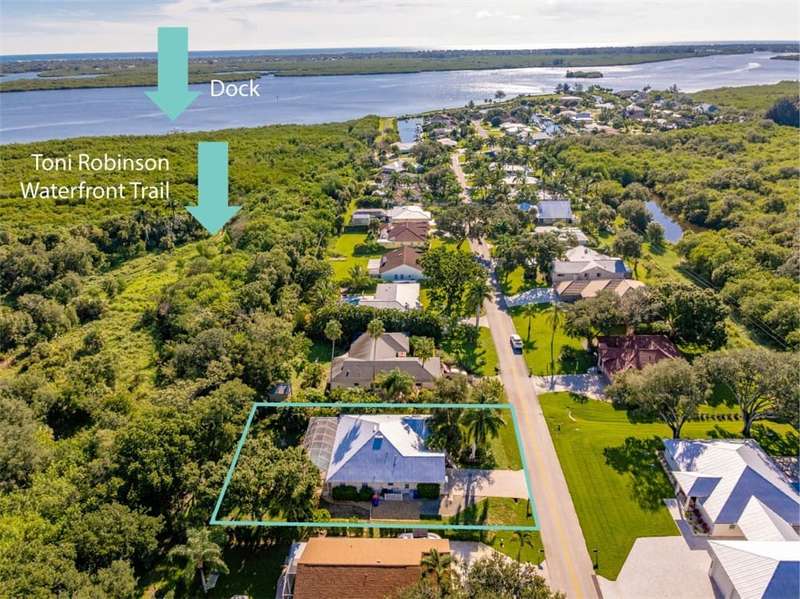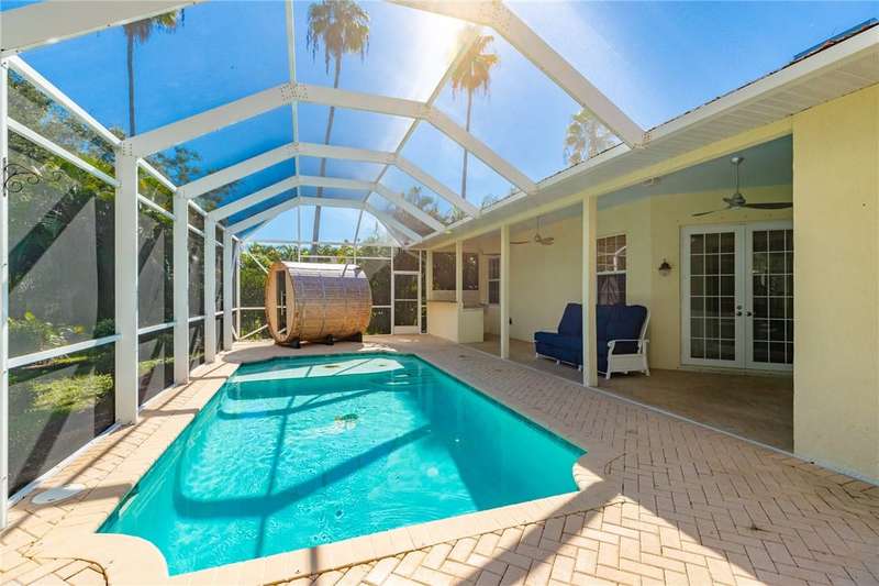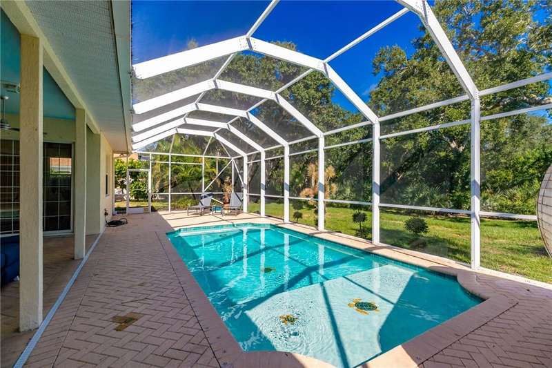 Your Dream Home: 5 minutes to beach & 4 minutes to boat ramp! Cheerful 3/2 + Den. Home features Vaulted Ceilings, Open Concept & 2021 Metal Roof. Enjoy NEWER Appliances, Custom Closets, Tile Floors, and Climate-Controlled Loft. Relaxing Front Porch & Spacious Back Pool Patio, plumbed for Outdoor Summer Kitchen, Heated Pool, and a Screened Pool enclosure. Irrigation System, Walk-In Pantry, Laundry area, 2 Car Garage with electric/water for your Boat or RV. River access via steps away via a scenic preserve with a Pier, Tiki Hut & Majestic River and Sunrise Views! Sizes are approx/subj to error.