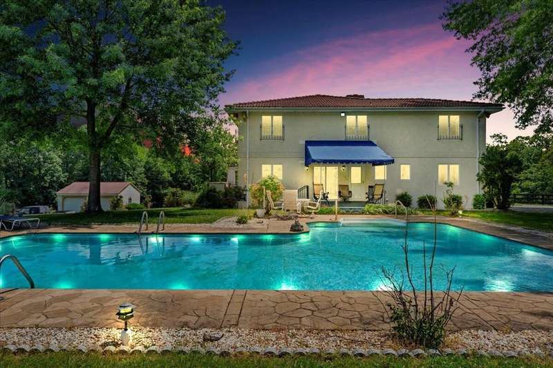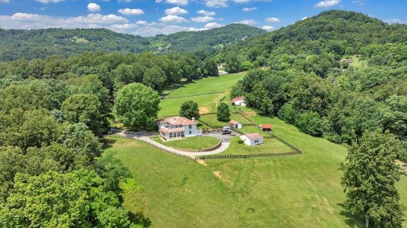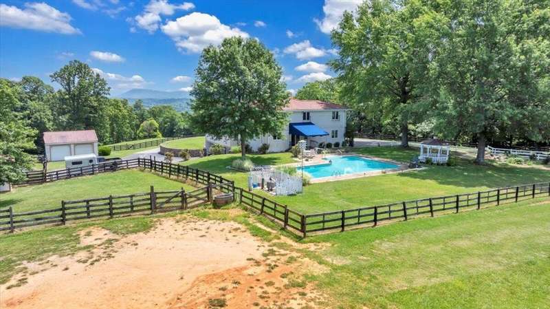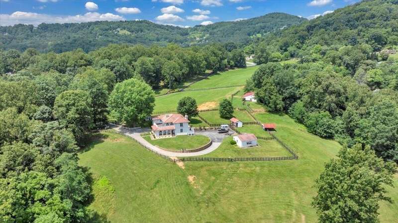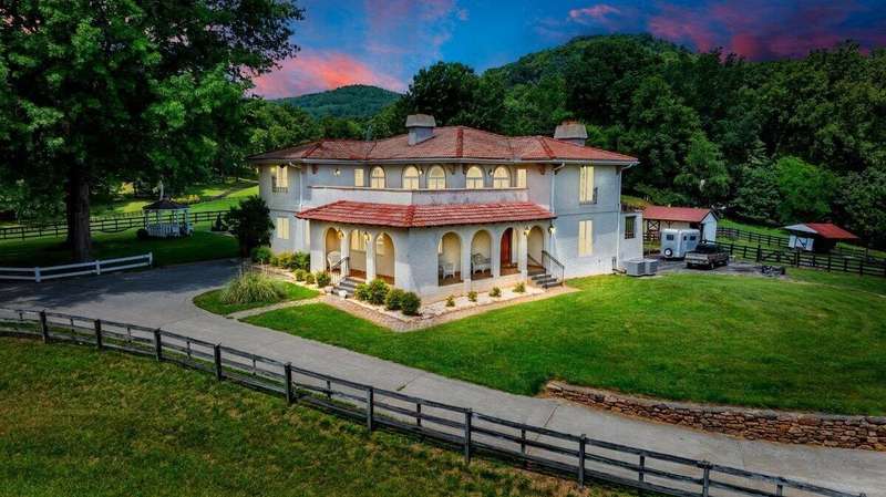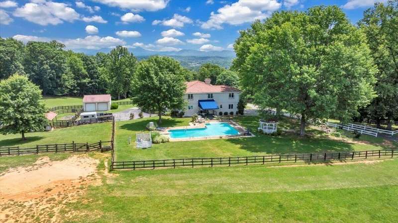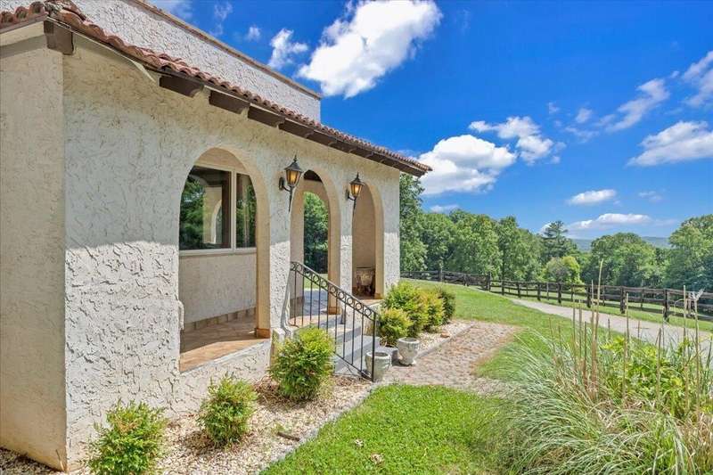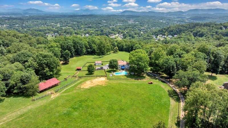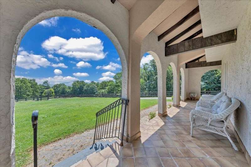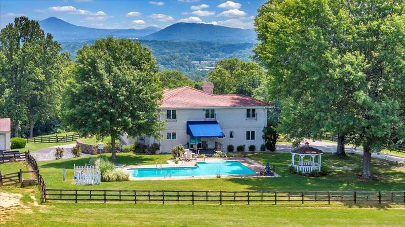A Once-in-a-Lifetime Opportunity in Southwest Roanoke County. Welcome to a truly special offering--this one-of-a-kind Spanish Colonial Revival home is being presented to the market for the very first time. Nestled on over 25 acres in the heart of Southwest Roanoke County, this beautiful horse farm offers timeless charm, unmatched privacy, and sweeping views of Downtown Roanoke, the City of Salem, and the Roanoke Valley. Designed with comfort and character in mind, the home features 4 bedrooms and 3.5 bathrooms. The main level welcomes you with a gracious foyer, a bright and spacious formal living room, a kitchen with gorgeous views of the pastures and barn, a dining room that opens to a private deck, and a cozy family room centered around a stunning floor-to-ceiling masonry fireplace.