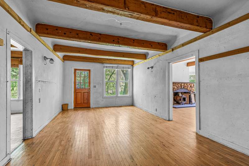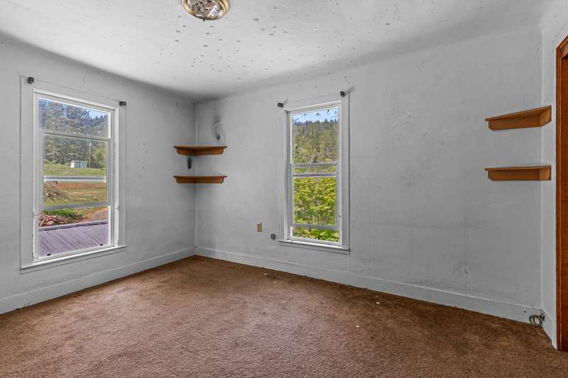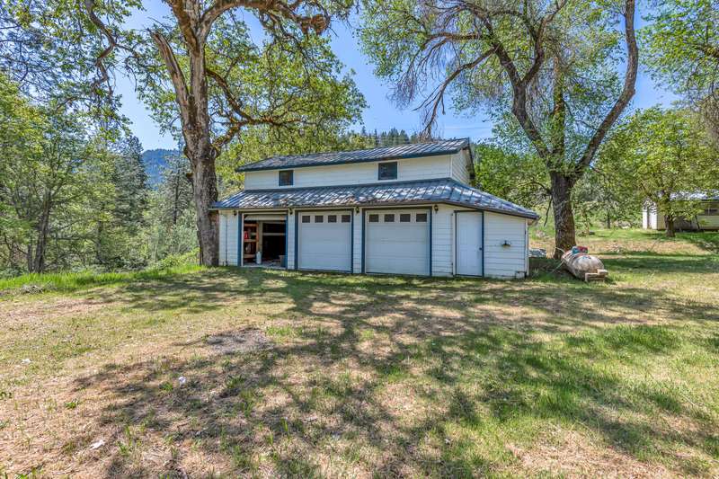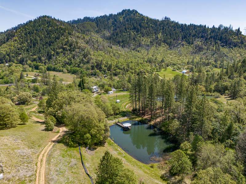 Tucked in a private, secluded valley, Mission Bell Ranch spans 64.09 acres of rolling hills, two ponds, irrigated acreage with 10 acres of water rights, and approx. 20 acres of forestland. Expansive fields with southern exposure and year-round Evans Creek enhance the EFU-zoned property, which also backs to BLM land—providing additional privacy, recreation, and access to nature. The historic grand lodge-style is ready for your vision. Featuring four spacious bedrooms, three bathrooms, and original hardwood floors throughout most rooms, offering a warm blend of timeless character and rustic charm. A large (5500sf) barn provides ample space for agricultural use, livestock, or storage. Additional structures include a three-car garage with an attached shop, perfect for tools, equipment, or creative workspace. A rare opportunity to own a scenic and peaceful retreat with endless potential.
