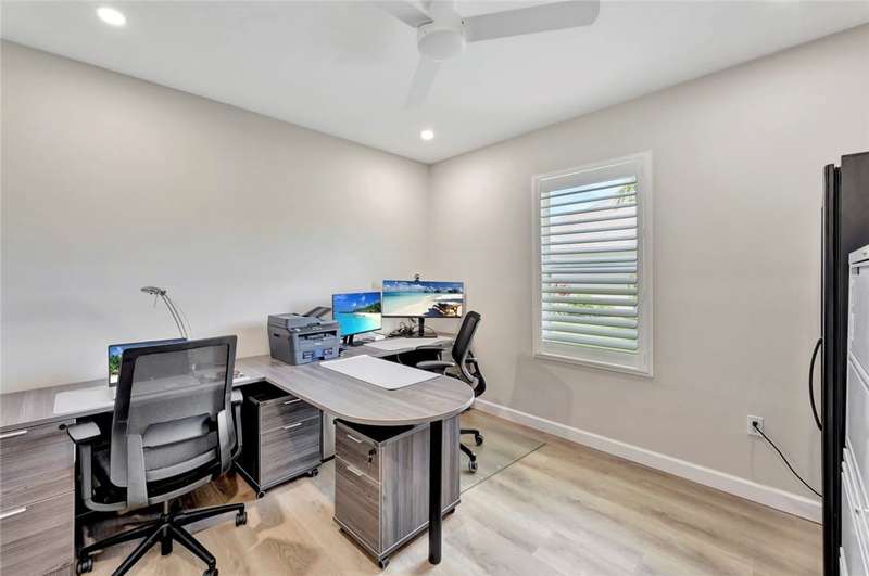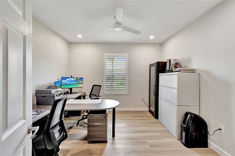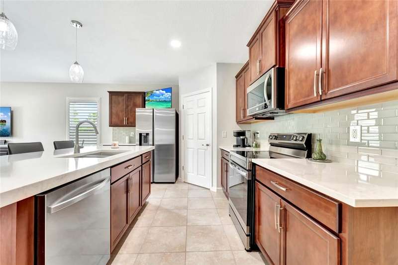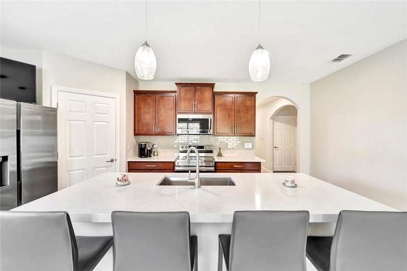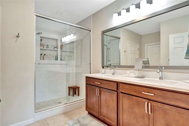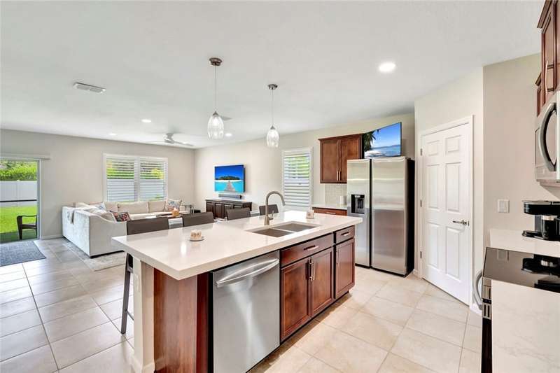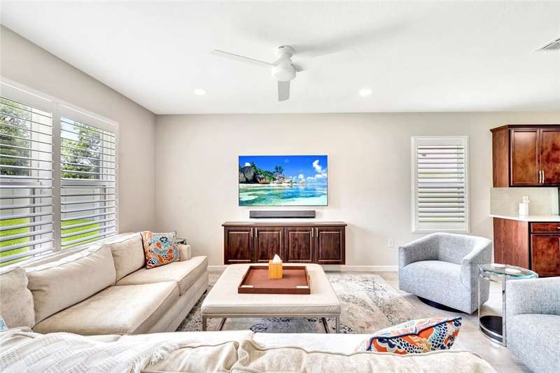 Very special 4BR/2BA home updated with over $114,000 in high end custom finishes since 2024. Screened porch overlooks large South exposure fenced backyard. Plenty of room for a private pool of you own design. Plantation shutters, quartz counters, appliances all new 2024, custom built-ins in Living & Dining rooms, updated baths, light fixtures & fans. Custom closet organizers throughout plus organizers in 2 car garage! Clubhouse with pool, fitness & tennis. Don't miss this! Sizes are approx/subj to error.