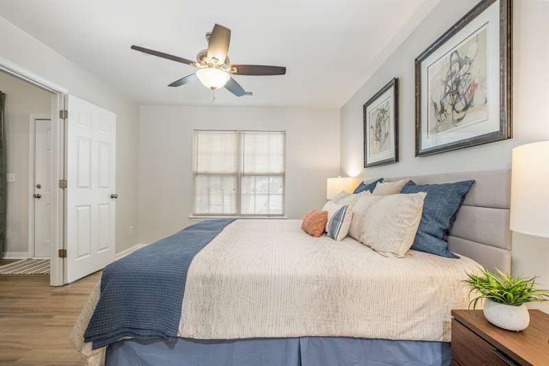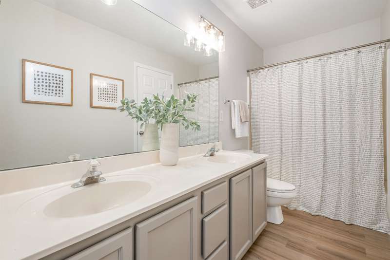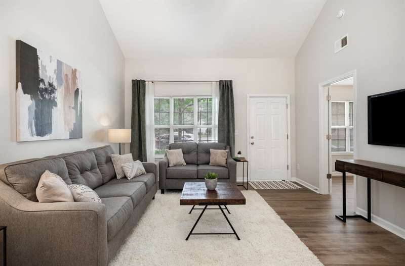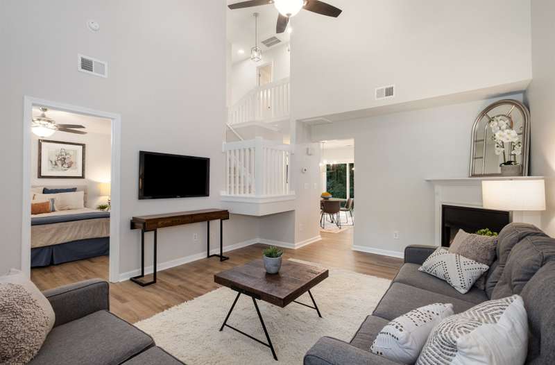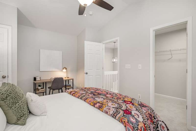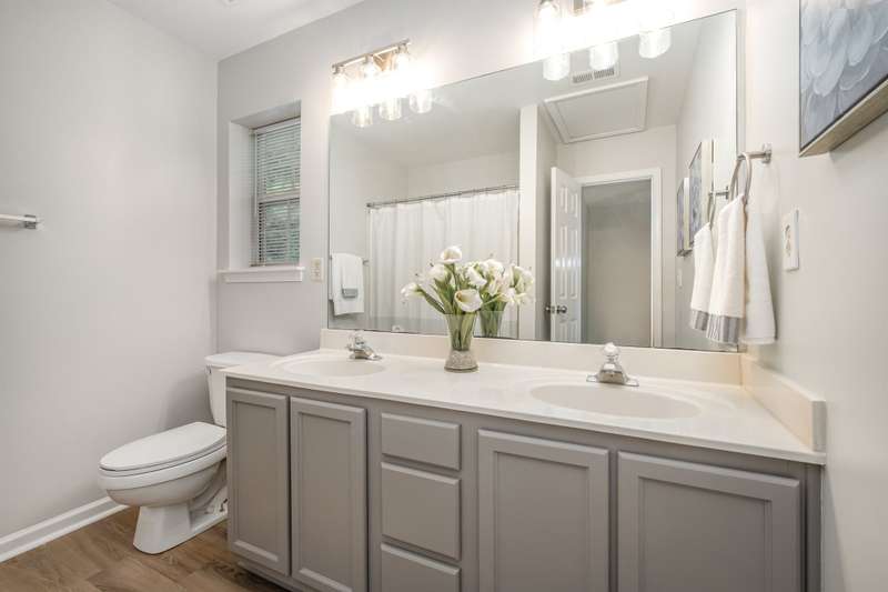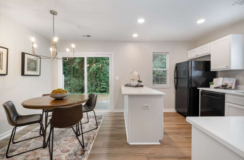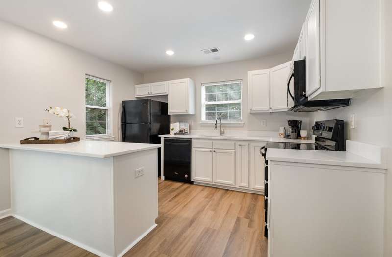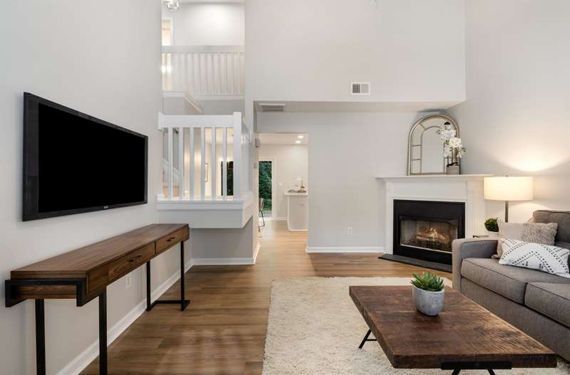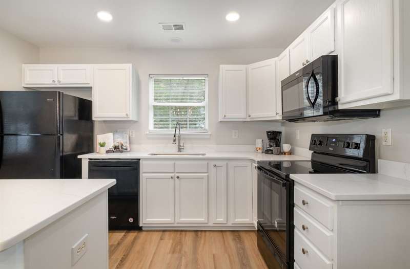 This end-unit townhome is a true standout, offering soaring two-story ceilings, an architecturally interesting staircase, & abundant natural light. Recent updates include smooth, bright white ceilings (no dated popcorn ceilings here!), fresh paint in a soft neutral, & light-toned LVP flooring that's a perfect blend of modern grey & sandy brown. Sleek brushed nickel hardware & lighting fixtures replaced dated brass. Spacious kitchen has tons of cabinets painted a fresh white & gorgeous new Quartz counters. The main-level primary suite offers two closets & dual vanity sinks. Upstairs offer new plush carpeting & spacious secondary bedrooms. A rear patio backs to natural space for private backyard dining. Holly Ridge charms with holiday themed street names, a community pool, pond, & walking path. Don't settle for a property that comes with a long to-do list, this property is ready for a new owner!