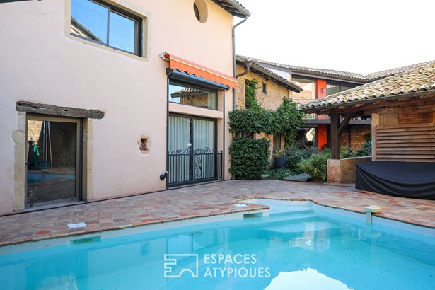 The amenities are impeccable: careful finishes, noble materials, modern equipment, all designed to offer comfort and elegance in everyday life. Outside, an enclosed and intimate courtyard houses a swimming pool and a jacuzzi area. Several outbuildings and a cellar complete the ensemble, adding charm and functionality to this characterful residence. Ideally located 5 minutes from the motorway entrances and TGV station, less than 10 minutes from Macon, a rare property, combining authenticity and modernity, ideal for lovers of stone and exceptional landscapes in a peaceful setting, and close to all amenities.