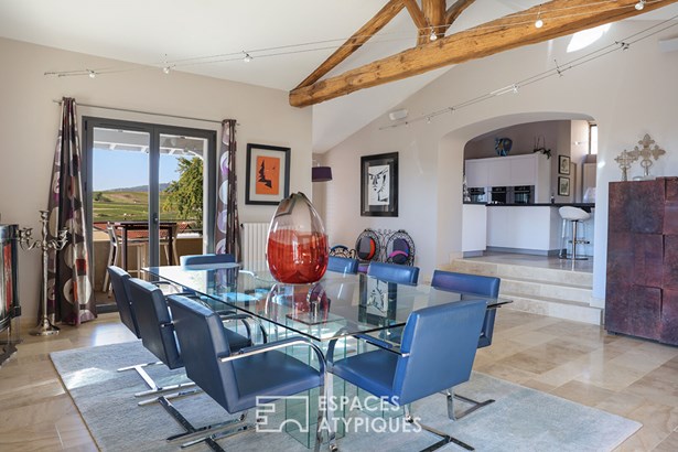 Nestled in one of the most sought-after wine-growing villages in the Maconnais, this exceptional 326 sqm property combines authenticity and refinement. Built in stone, typical of the region, it offers a unique panorama of the Saone Valley, the surrounding vineyards and, on a clear day, the majestic silhouette of Mont Blanc.